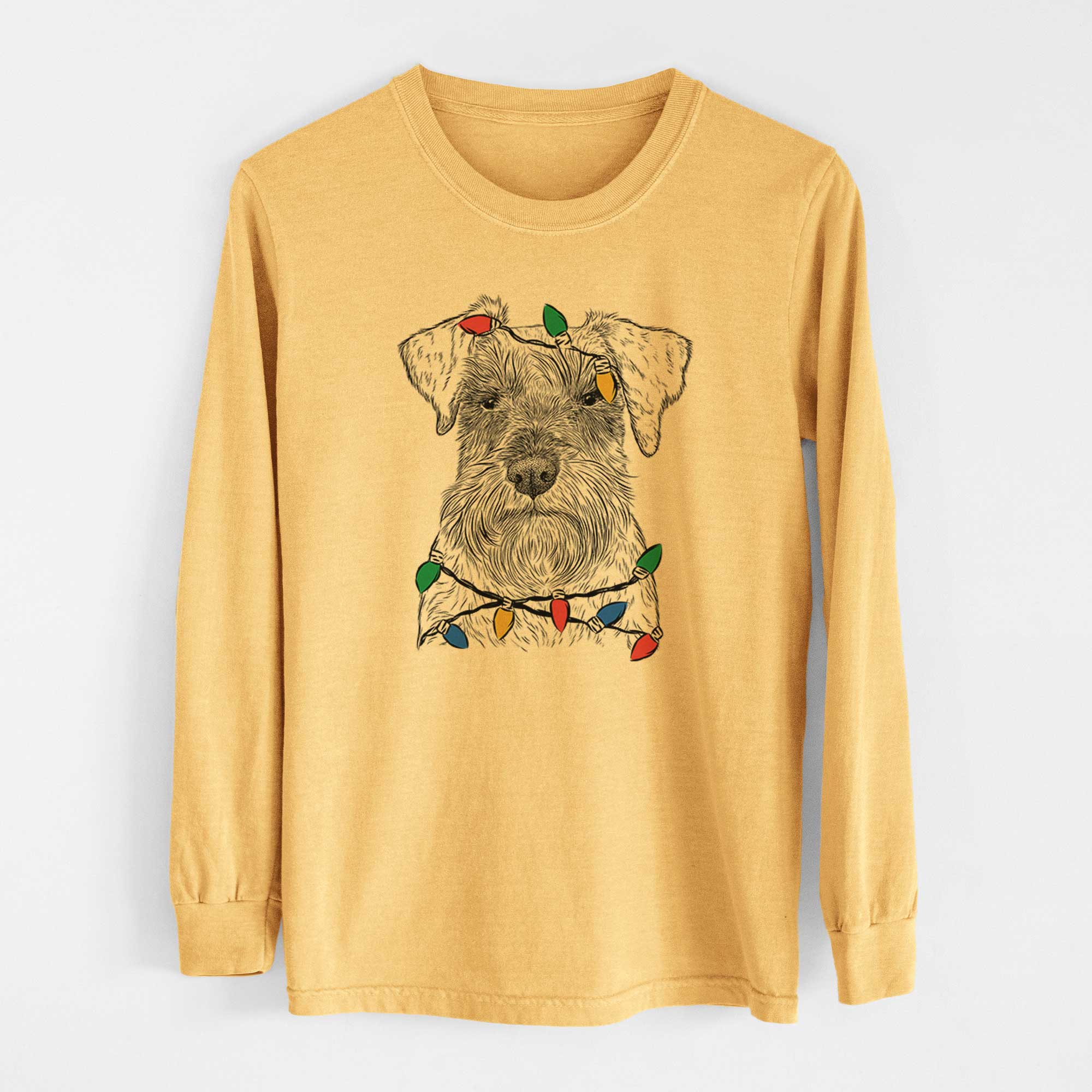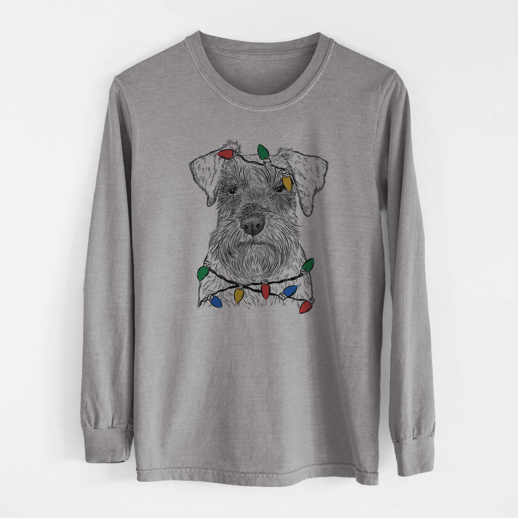 Christmas Lights Smokey the Miniature Schnauzer - Heavyweight 100% Cotton Long Sleeve