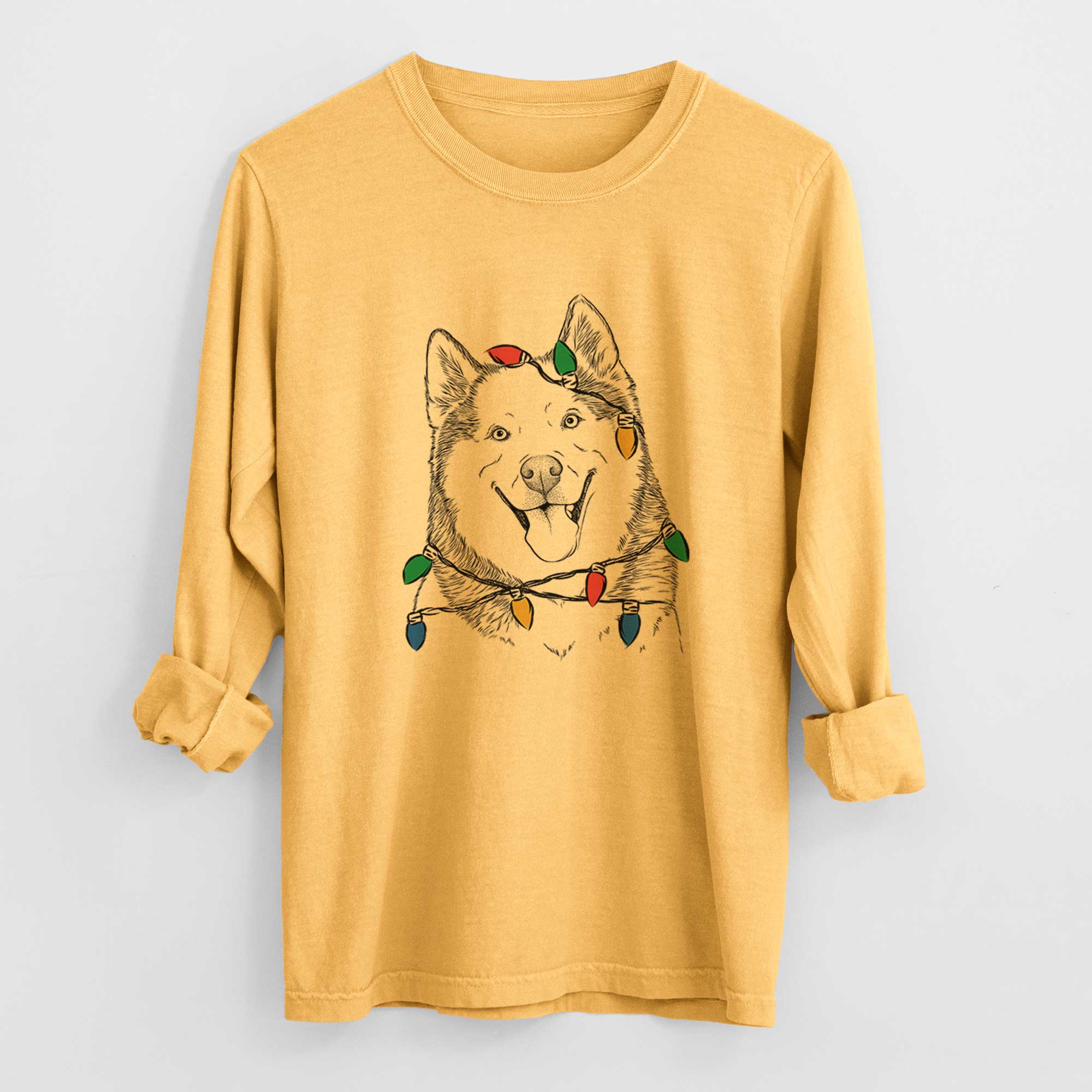 Christmas Lights Teak the Siberian Husky - Heavyweight 100% Cotton Long Sleeve