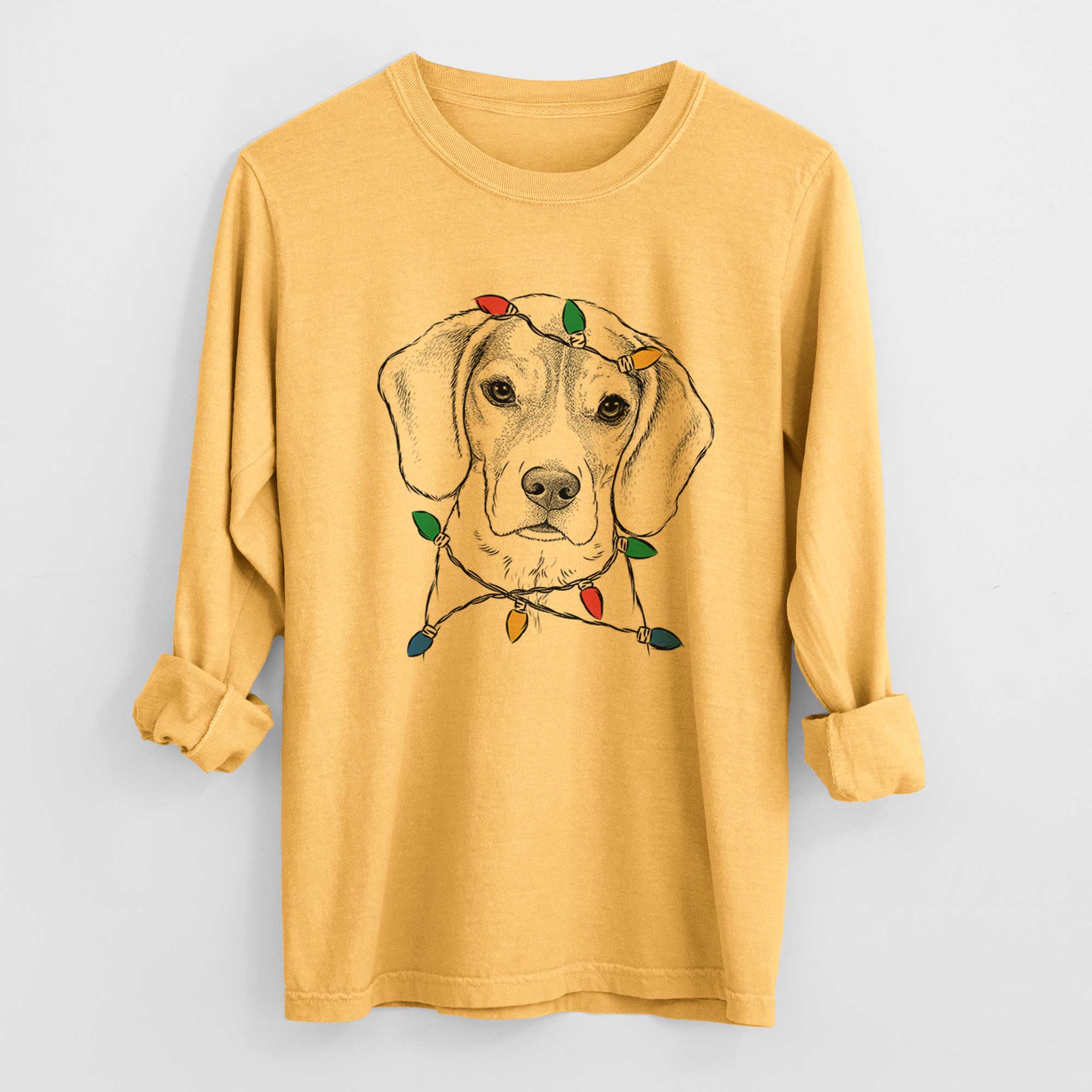 Christmas Lights Thea the Beagle - Heavyweight 100% Cotton Long Sleeve