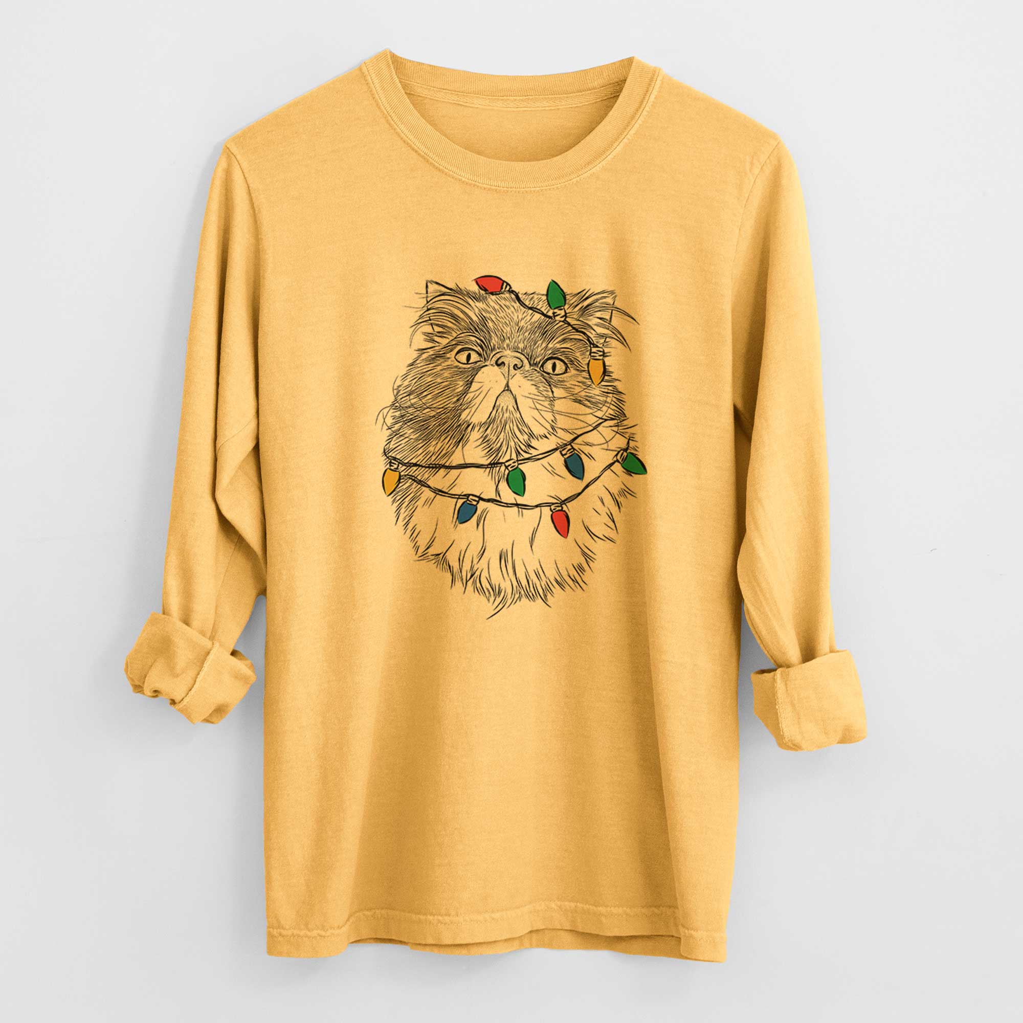 Christmas Lights Tookie the Perisan Cat - Heavyweight 100% Cotton Long Sleeve