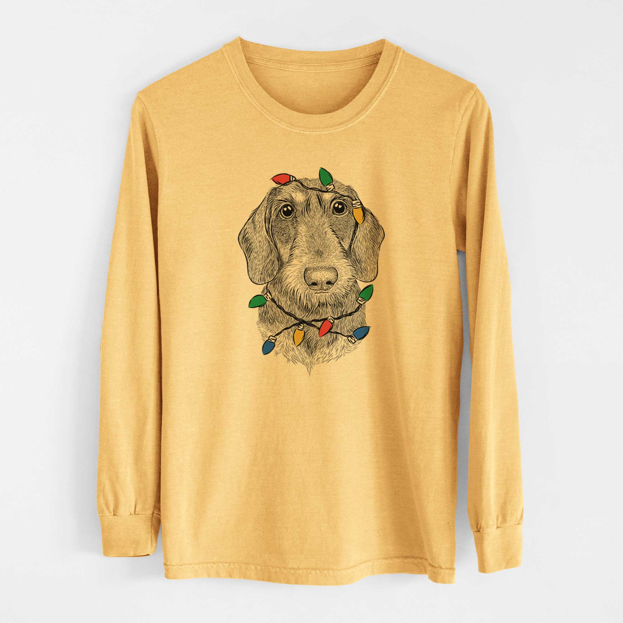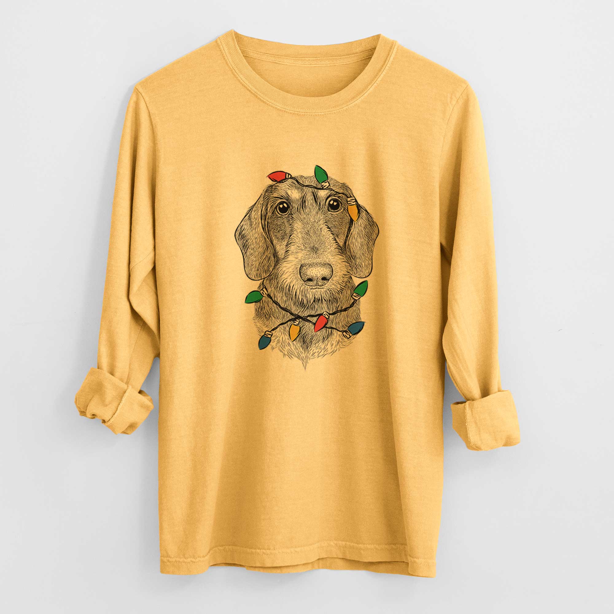 Christmas Lights Truman the Wirehaired Dachshund - Heavyweight 100% Cotton Long Sleeve