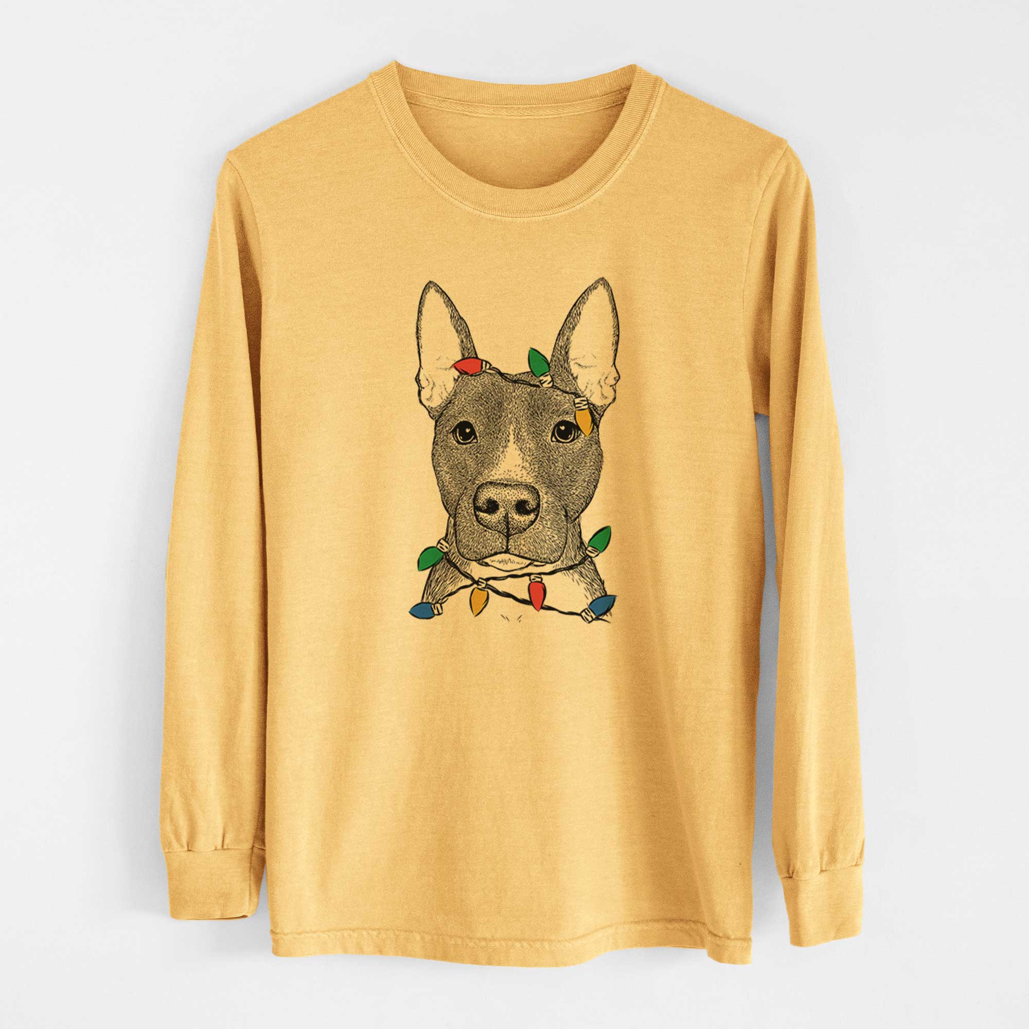 Christmas Lights Violet the Pitbull - Heavyweight 100% Cotton Long Sleeve