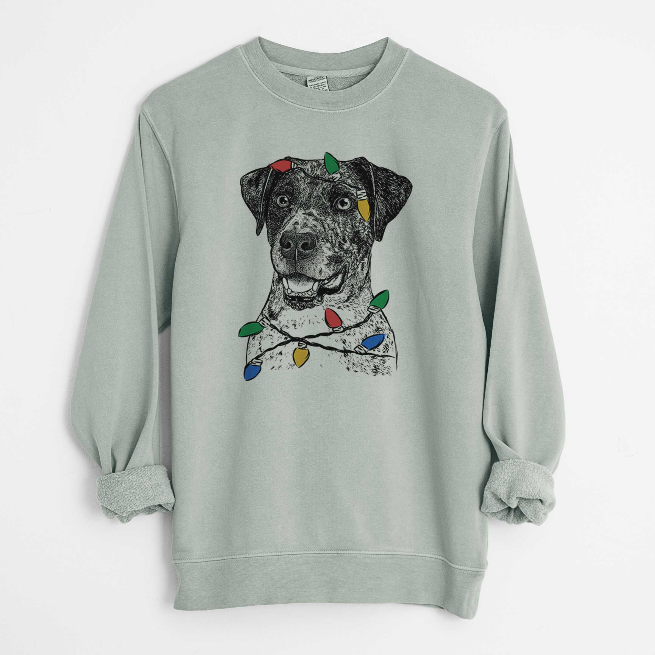 Christmas Lights Argos the Catahoula - Unisex Pigment Dyed Crew Sweatshirt