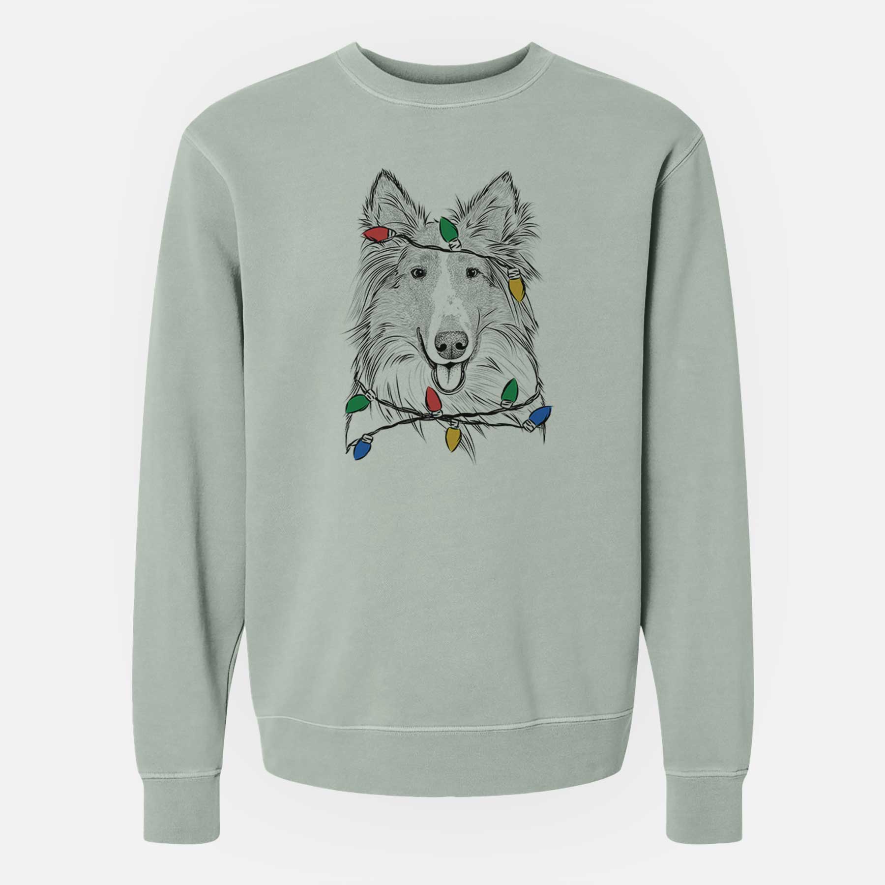 Christmas Lights Conrad the Rough Collie - Unisex Pigment Dyed Crew Sweatshirt