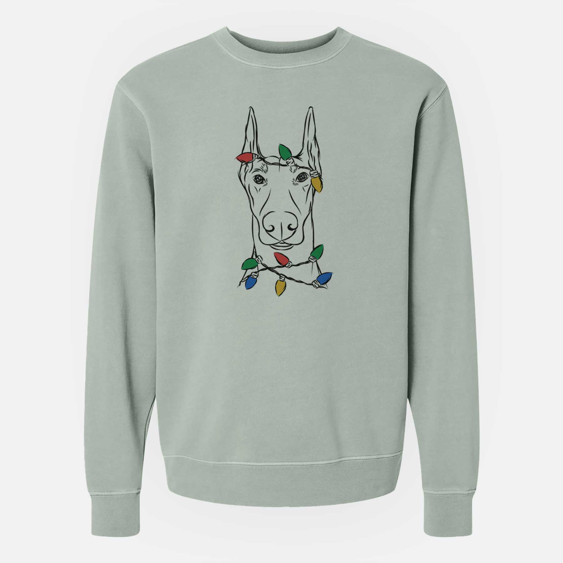 Christmas Lights Duke the Doberman Pinscher - Unisex Pigment Dyed Crew Sweatshirt