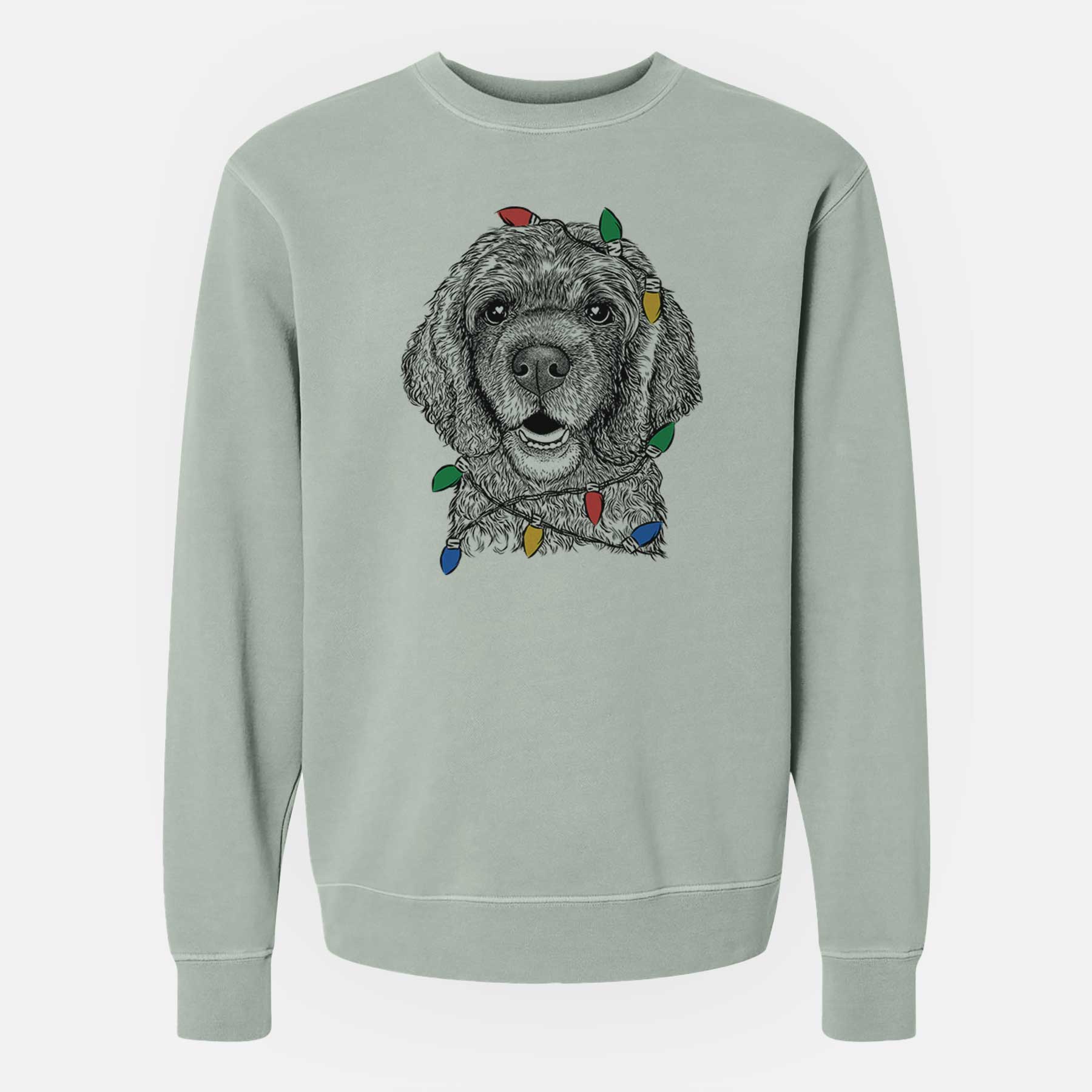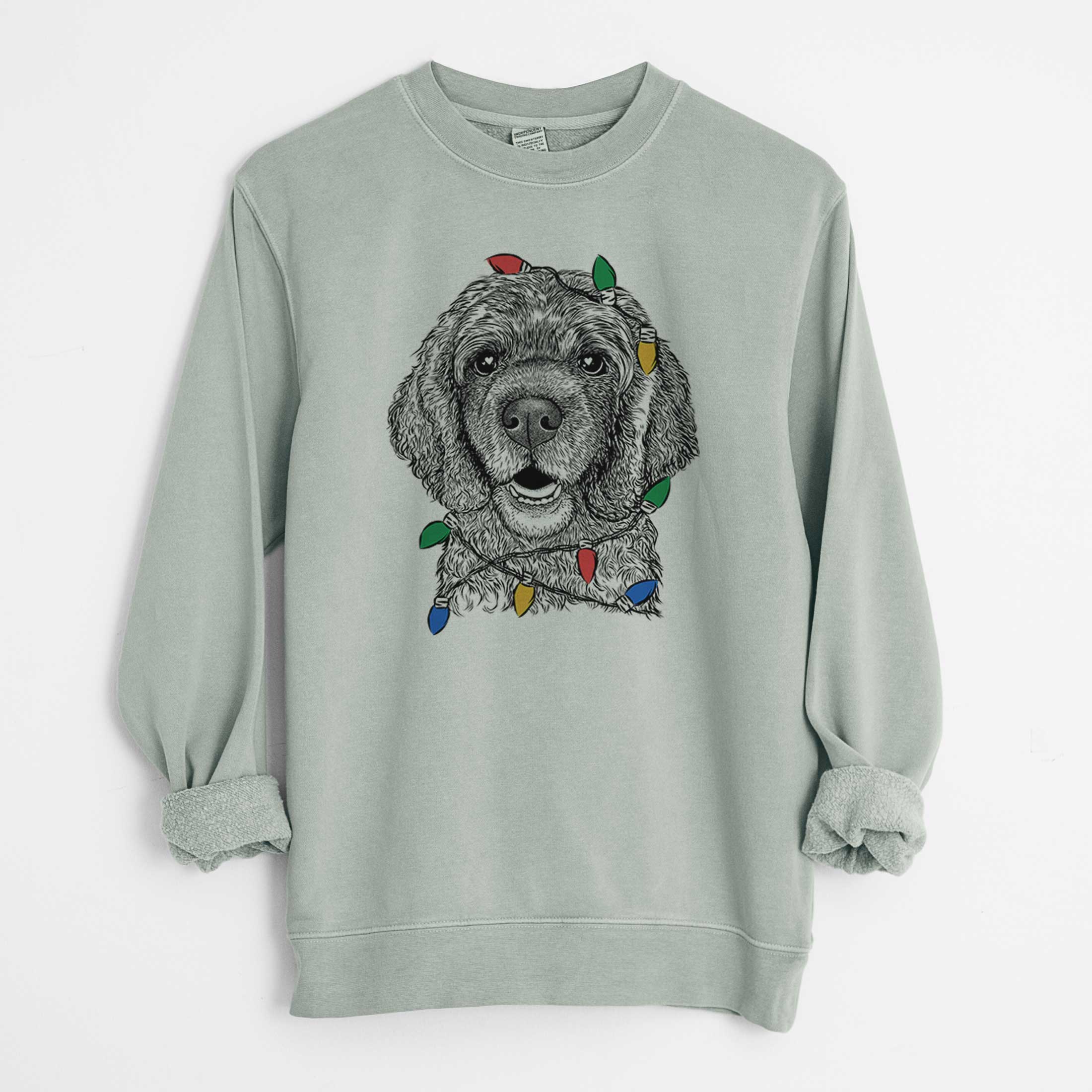 Christmas Lights Fannie Mae the Cocker Spaniel - Unisex Pigment Dyed Crew Sweatshirt