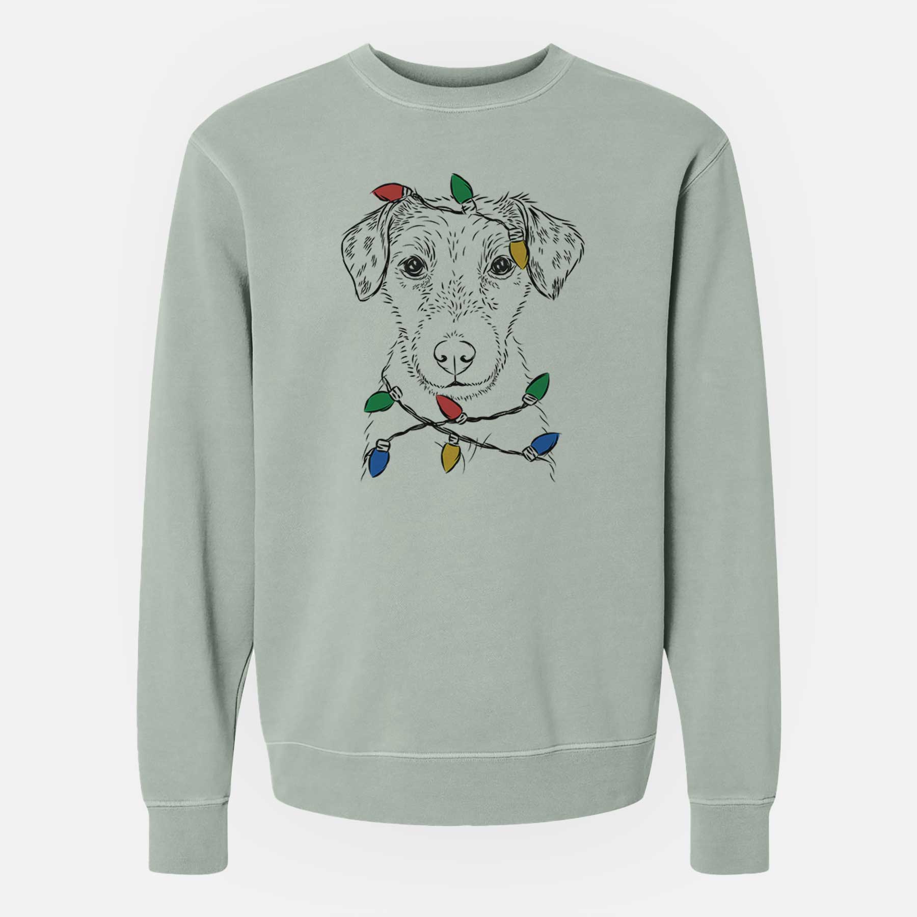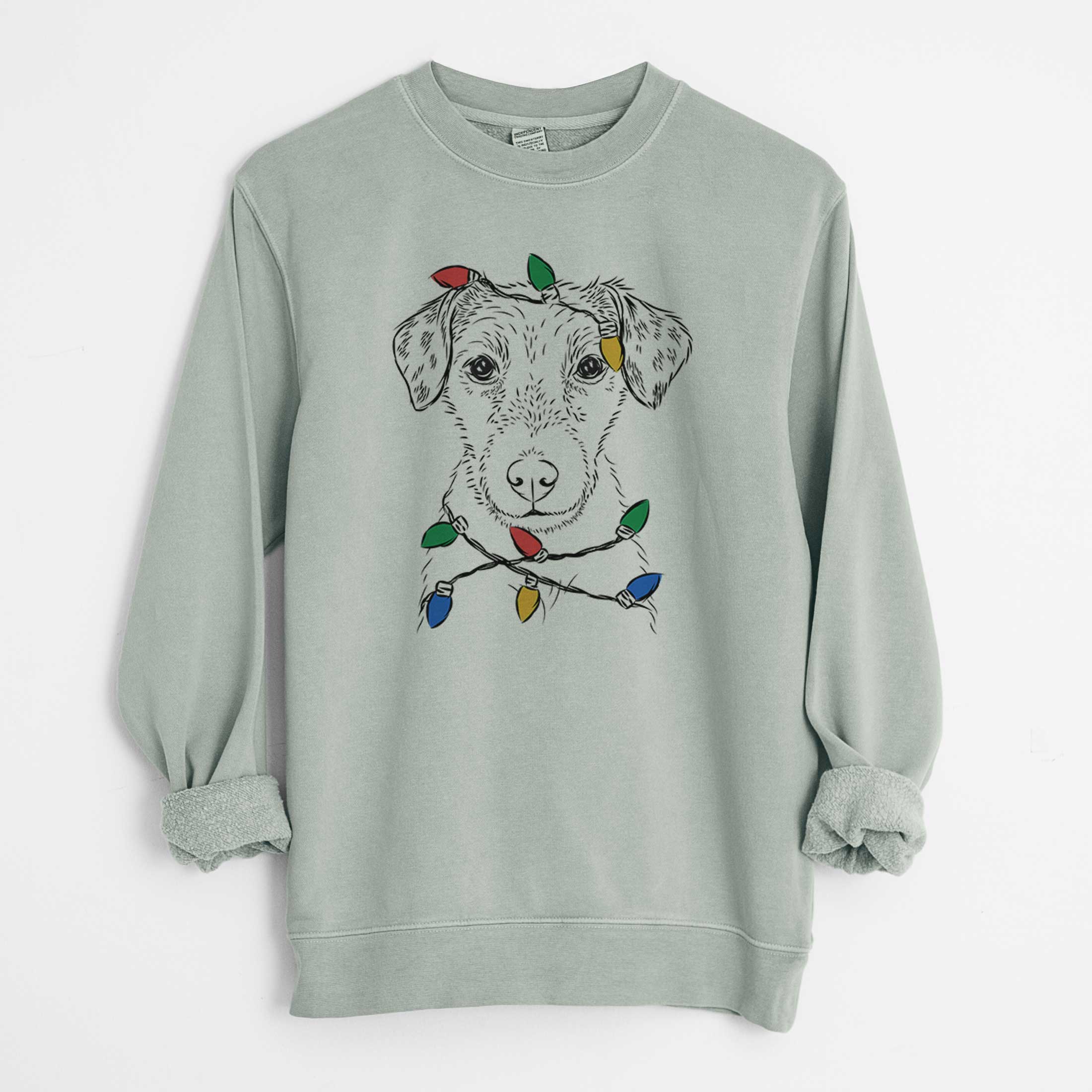 Christmas Lights Kozmo the Jack Russell Terrier - Unisex Pigment Dyed Crew Sweatshirt
