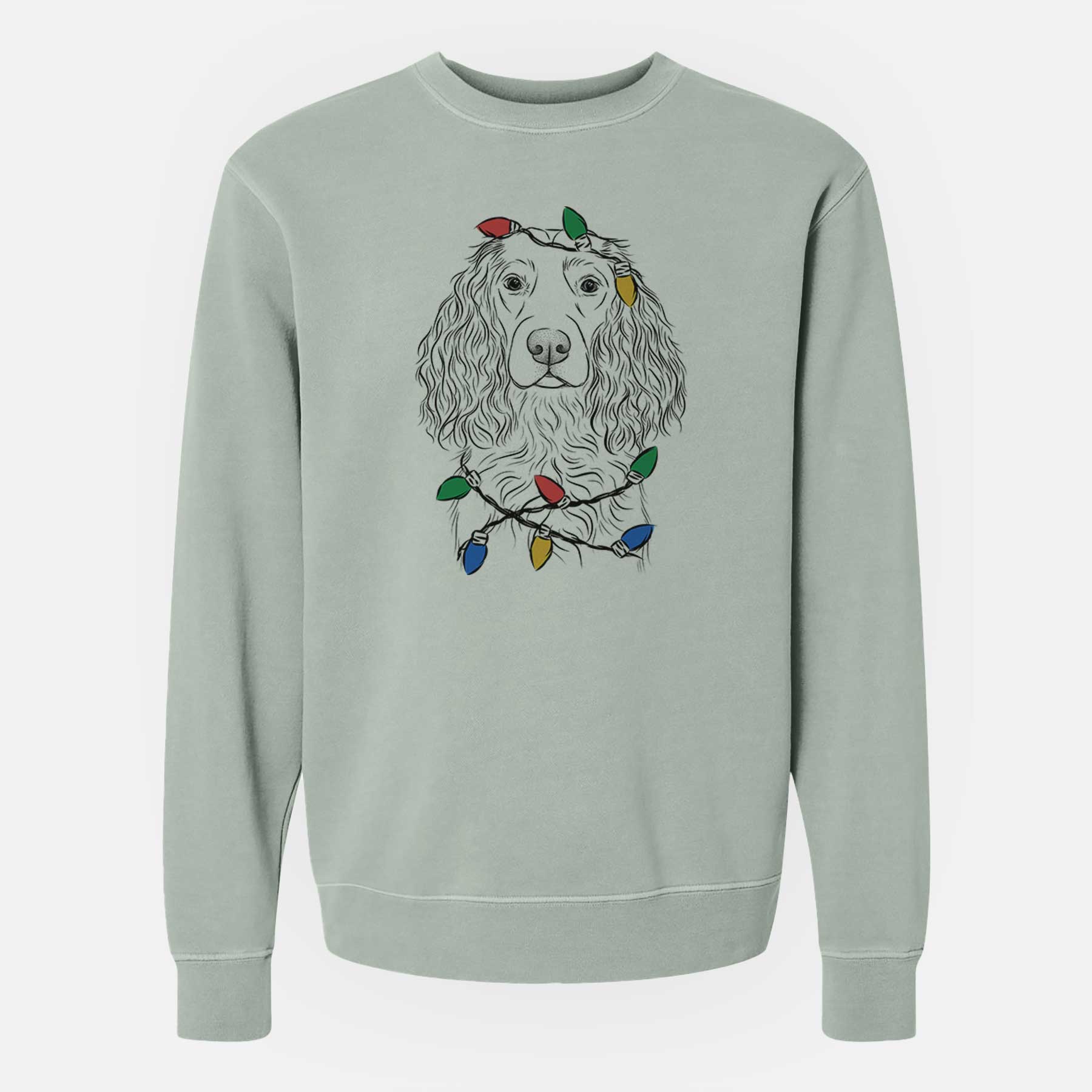 Christmas Lights Landry the Boykin Spaniel - Unisex Pigment Dyed Crew Sweatshirt