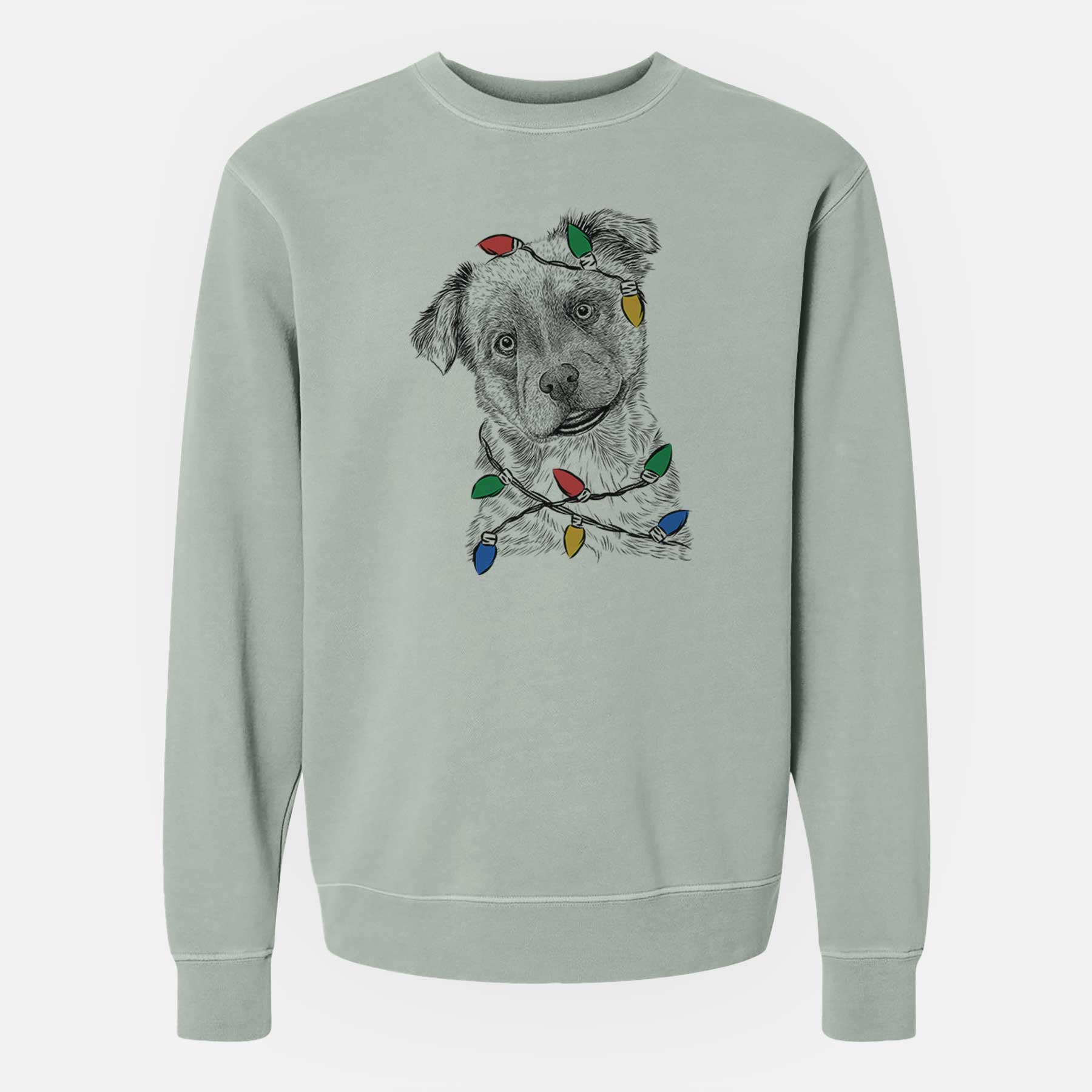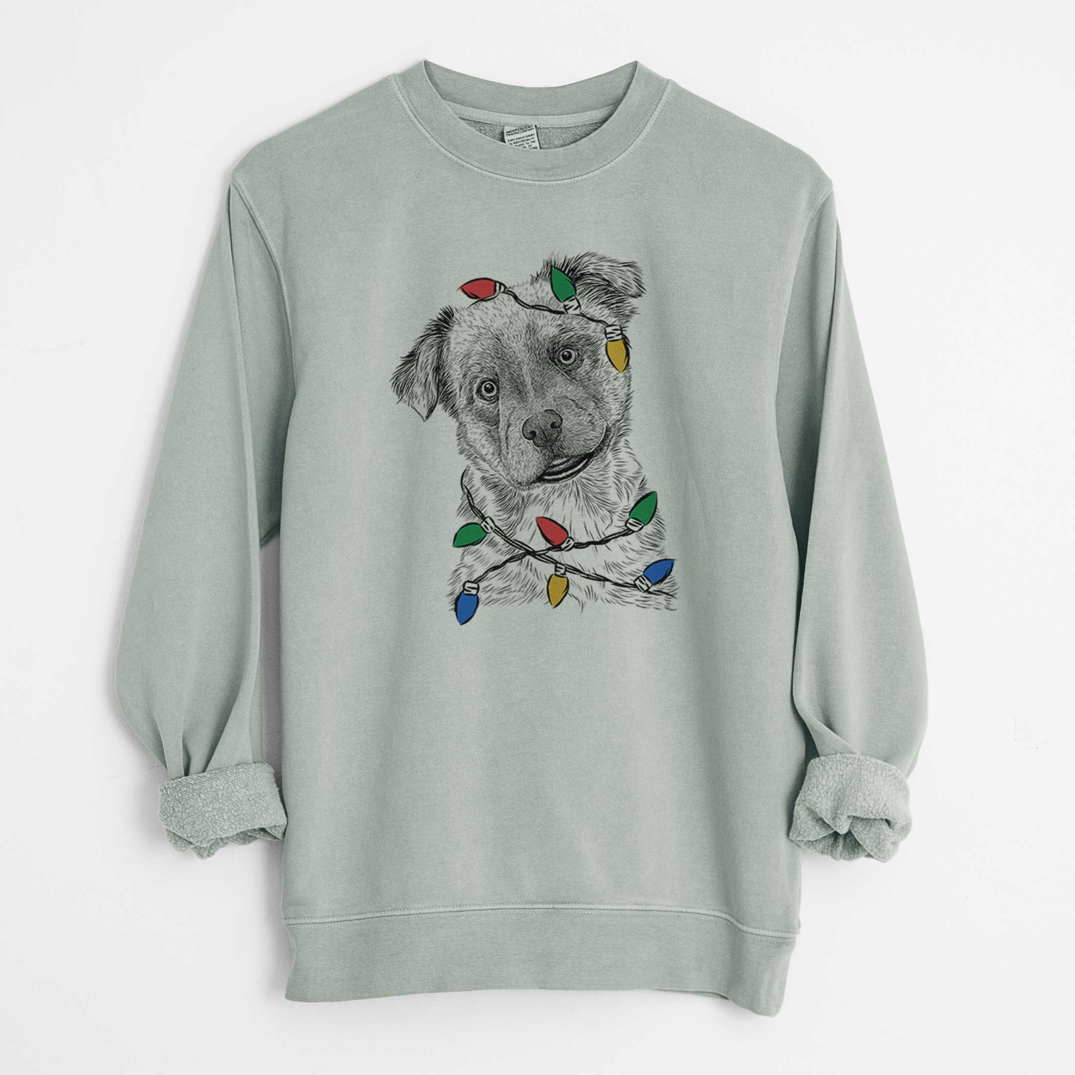 Christmas Lights Loki Bear the Australian Cattle Dog Mix - Unisex Pigment Dyed Crew Sweatshirt