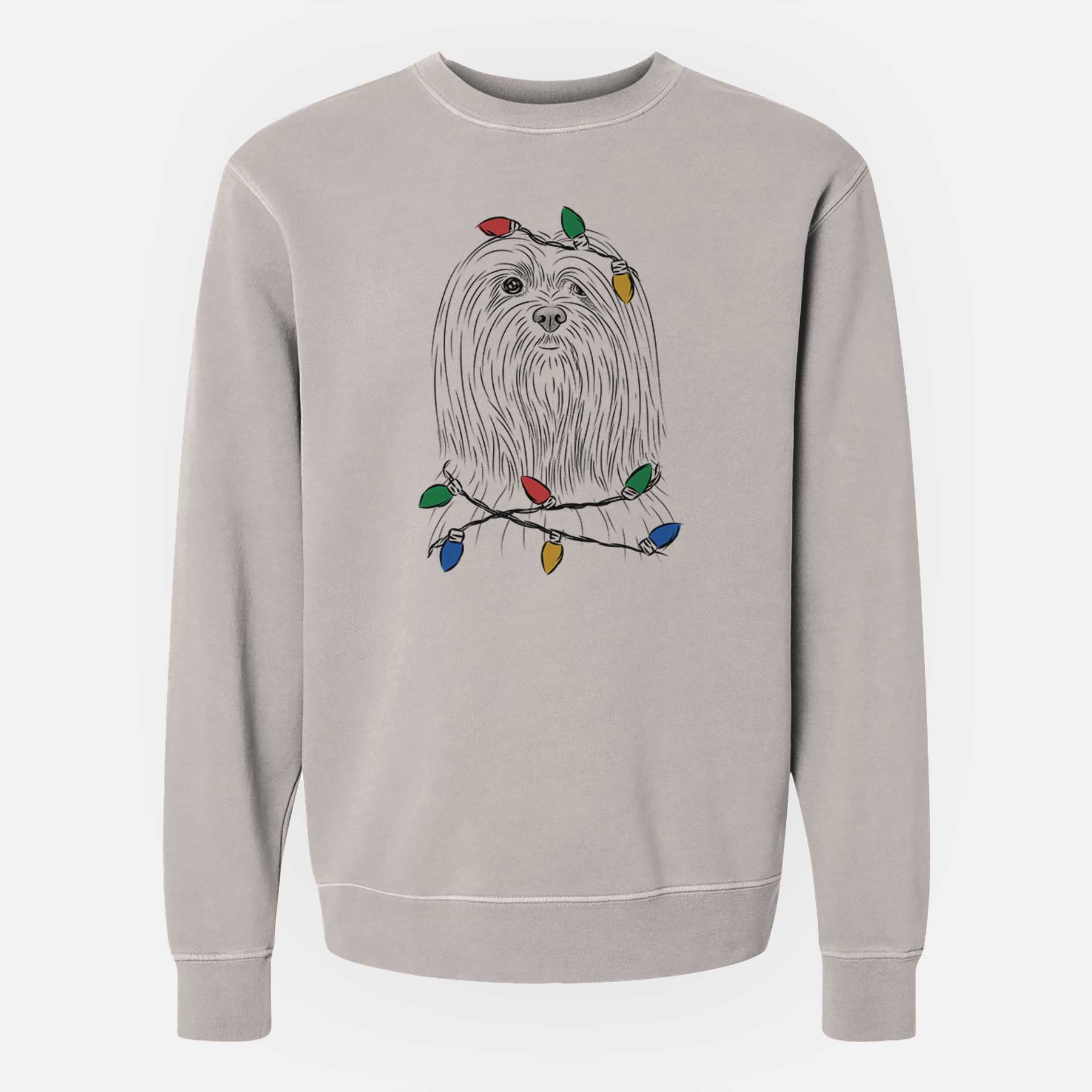 Christmas Lights Lorenzo the Lhasa Apso - Unisex Pigment Dyed Crew Sweatshirt