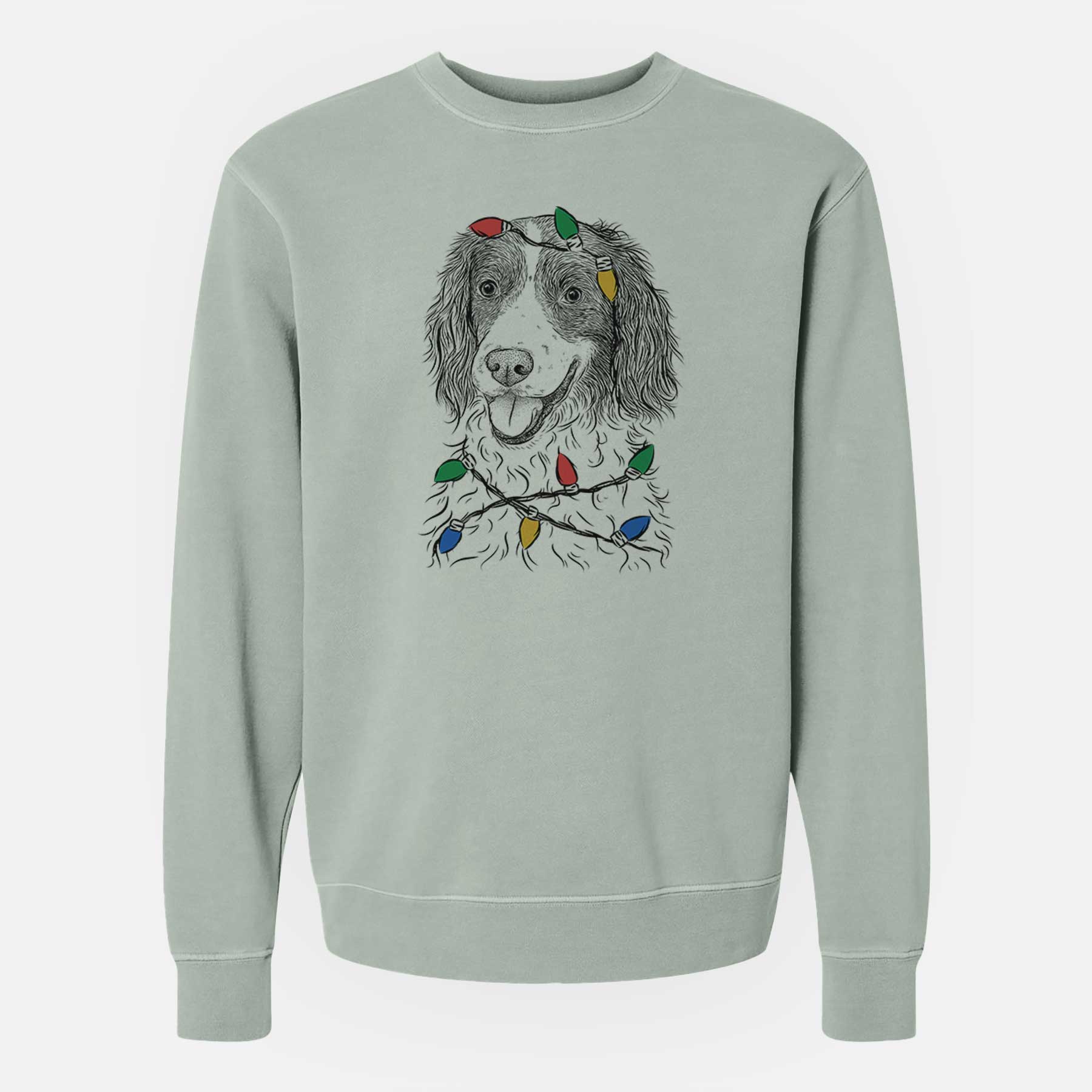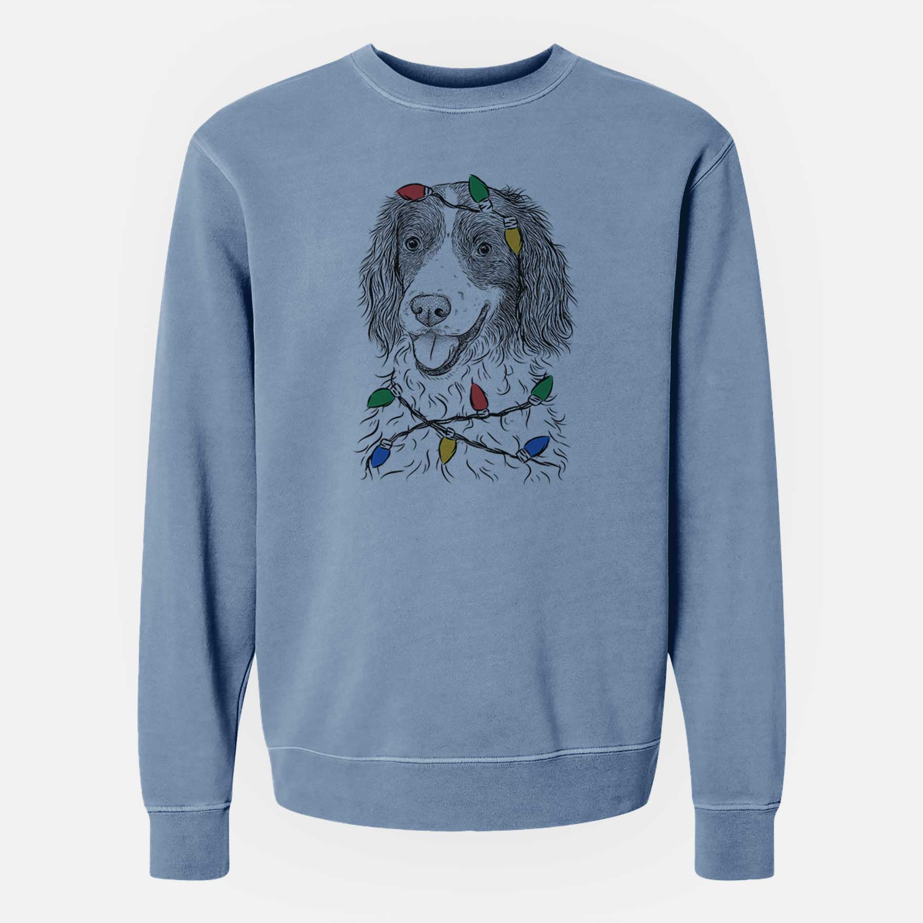 Christmas Lights Maggie the Springer Spaniel - Unisex Pigment Dyed Crew Sweatshirt