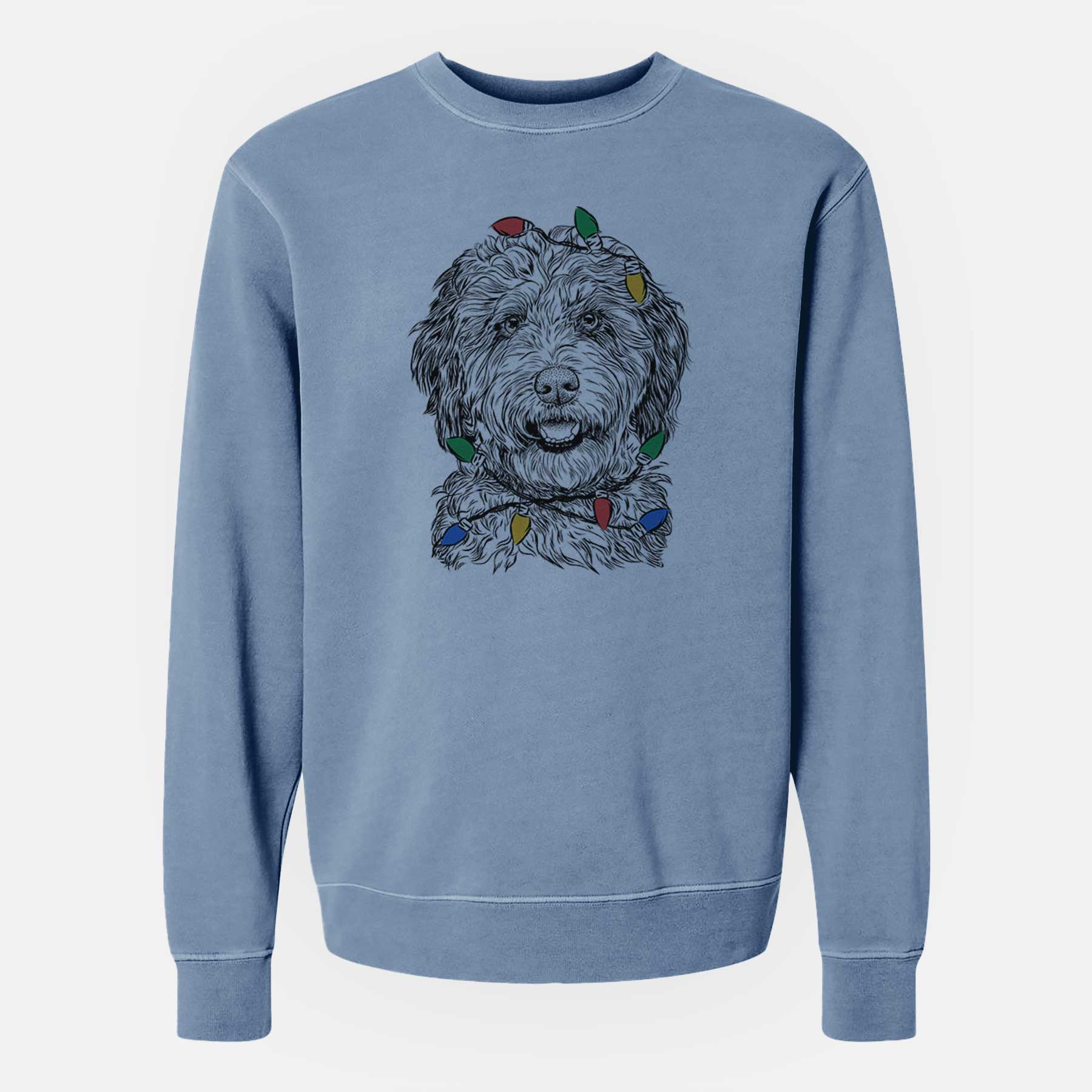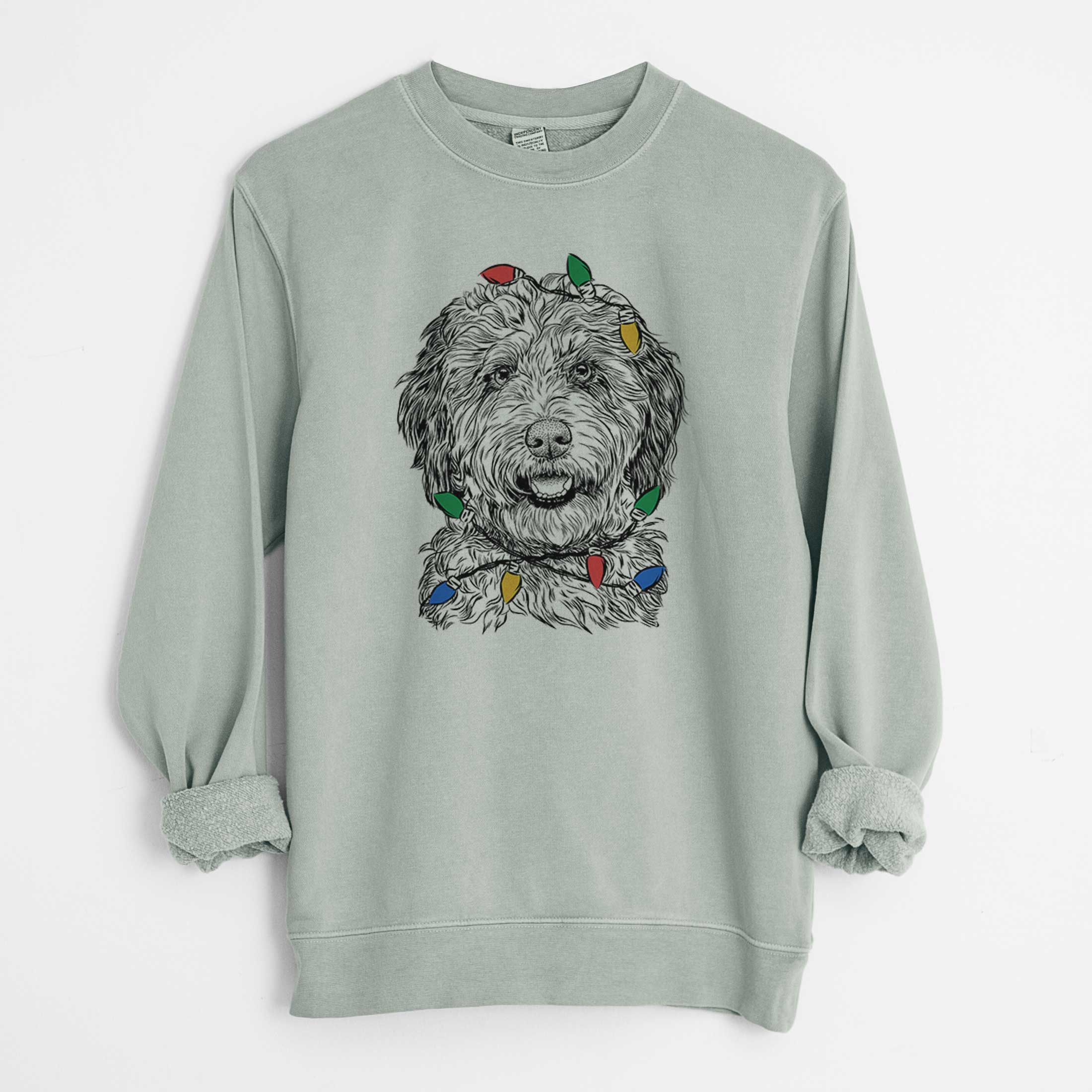 Christmas Lights Palmer the Aussiedoodle - Unisex Pigment Dyed Crew Sweatshirt