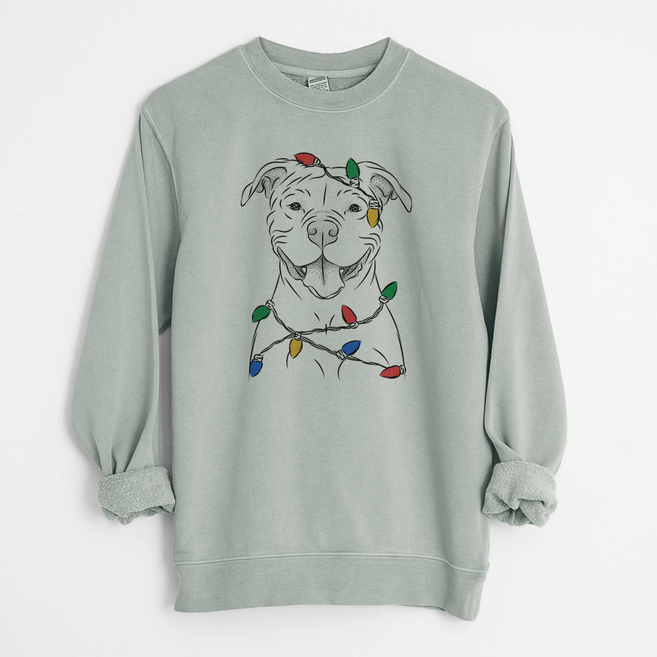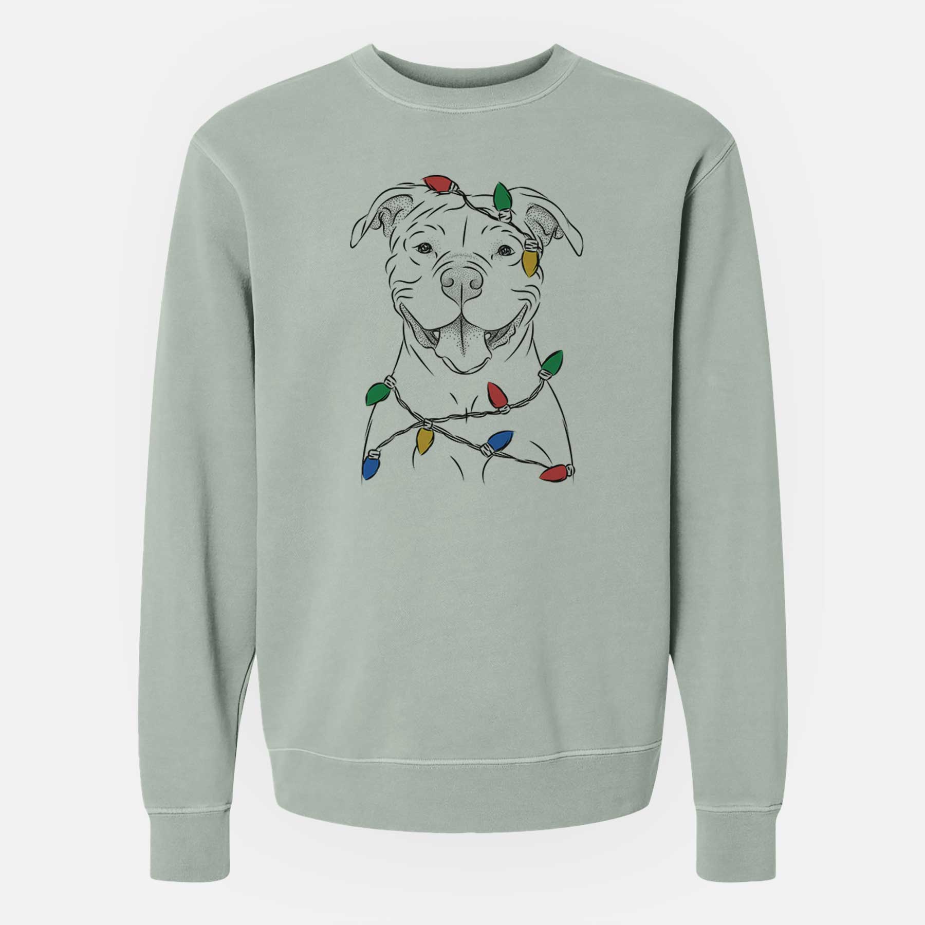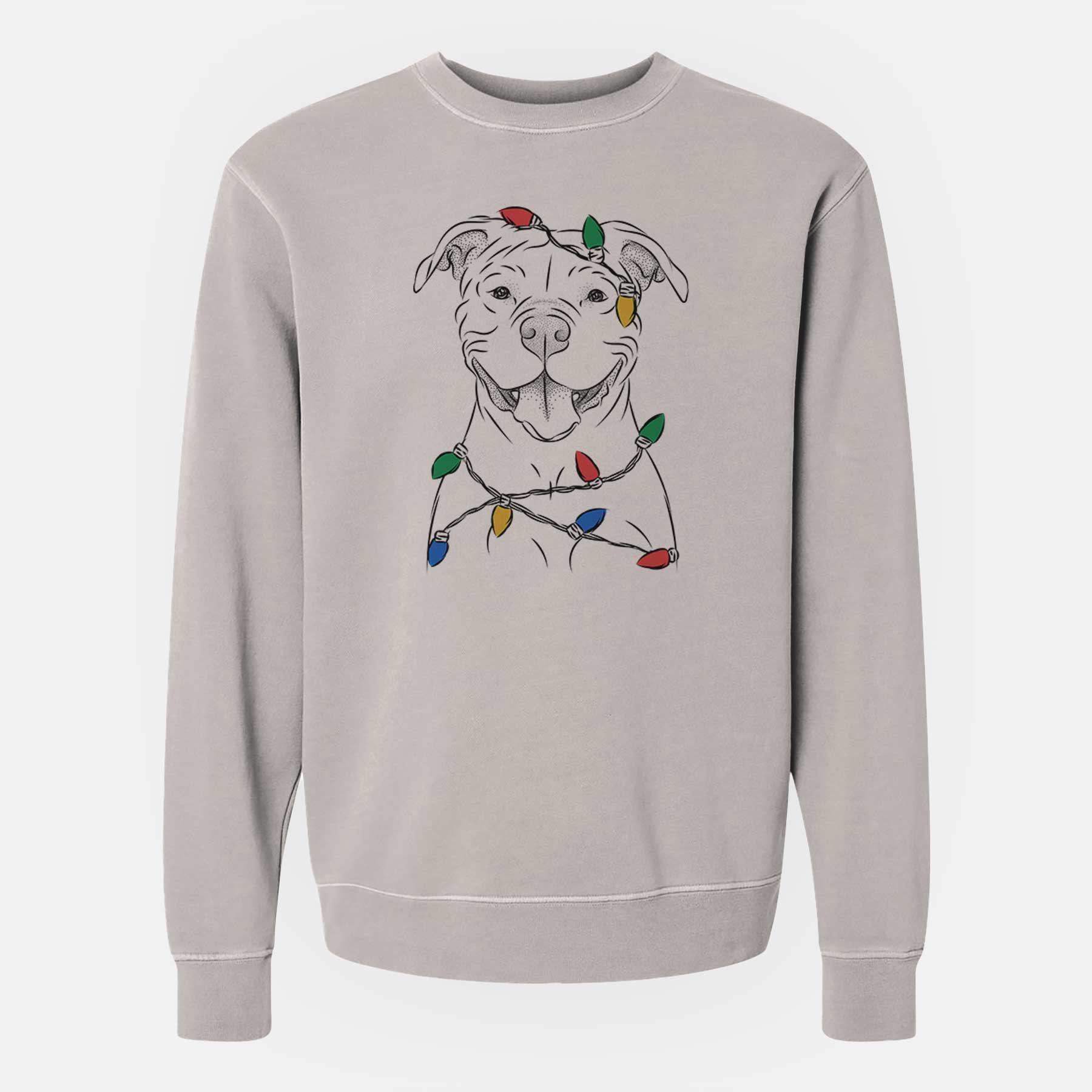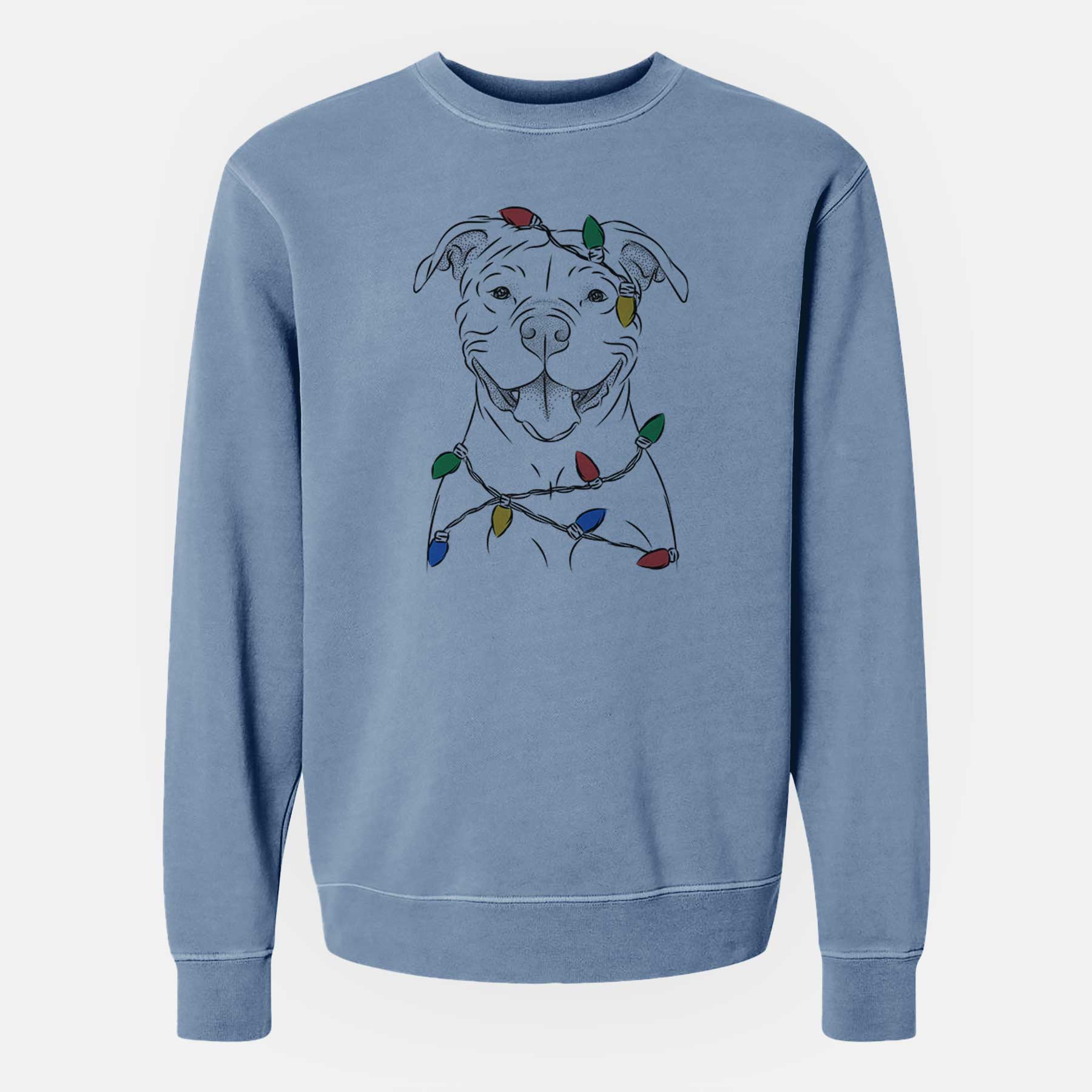 Christmas Lights Tyson the American Bulldog - Unisex Pigment Dyed Crew Sweatshirt