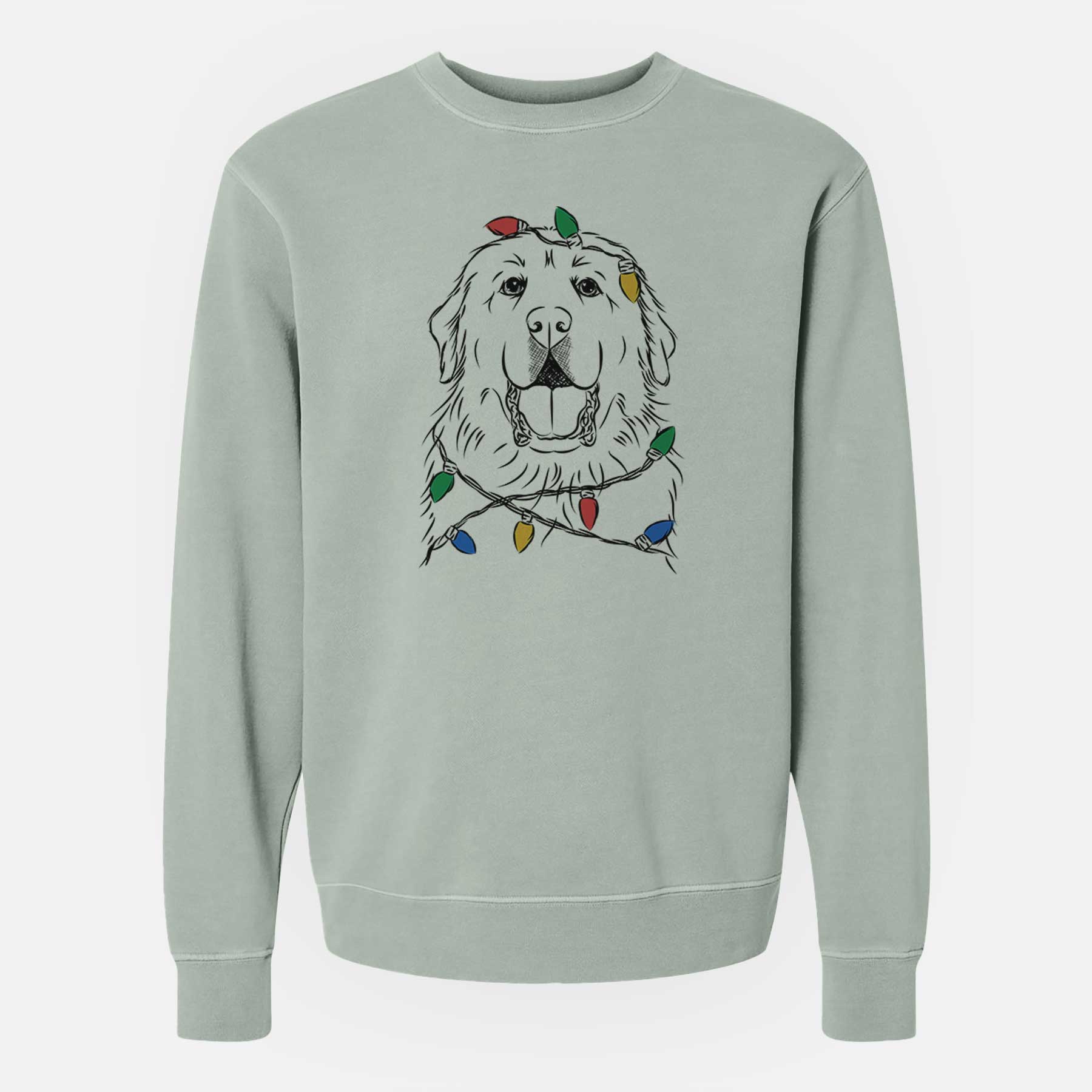 Christmas Lights Zeus the Great Pyrenees - Unisex Pigment Dyed Crew Sweatshirt