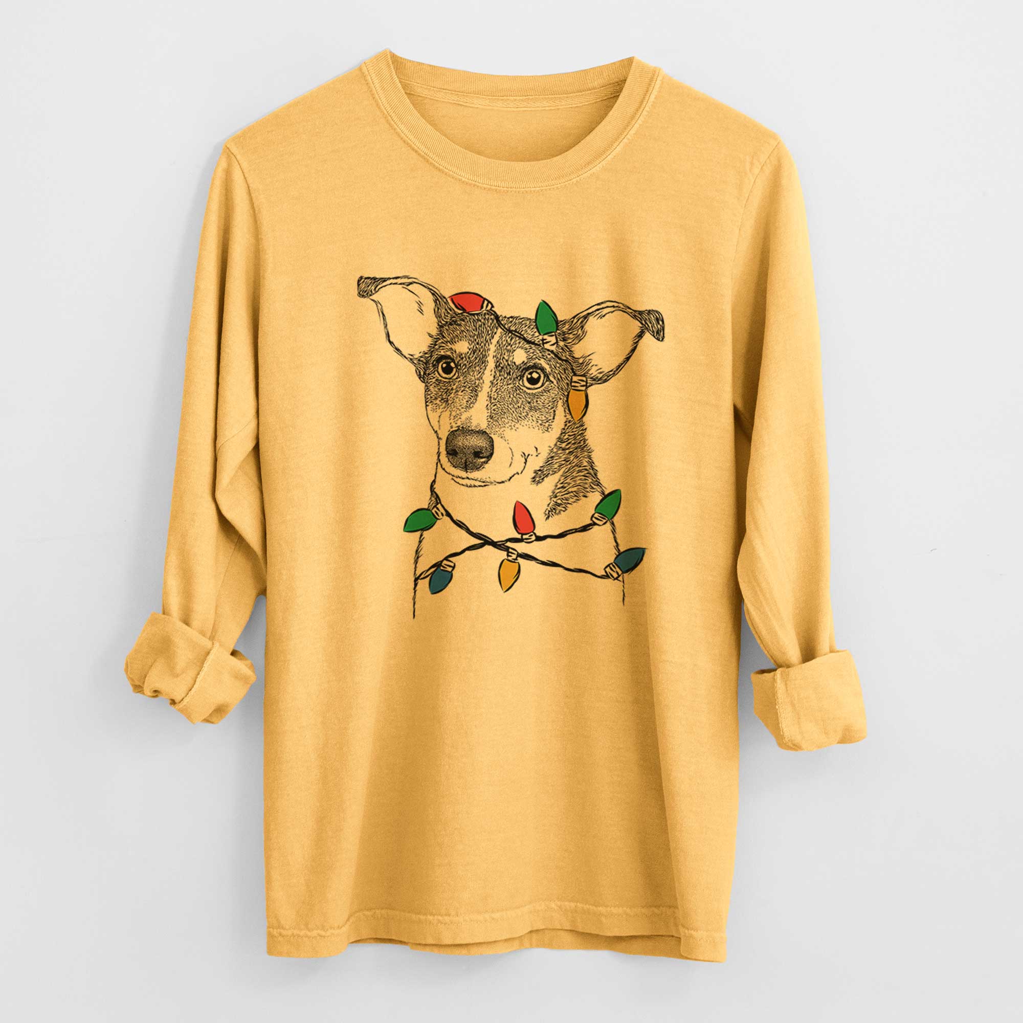 Christmas Lights Cleo the Terrier Mix - Heavyweight 100% Cotton Long Sleeve