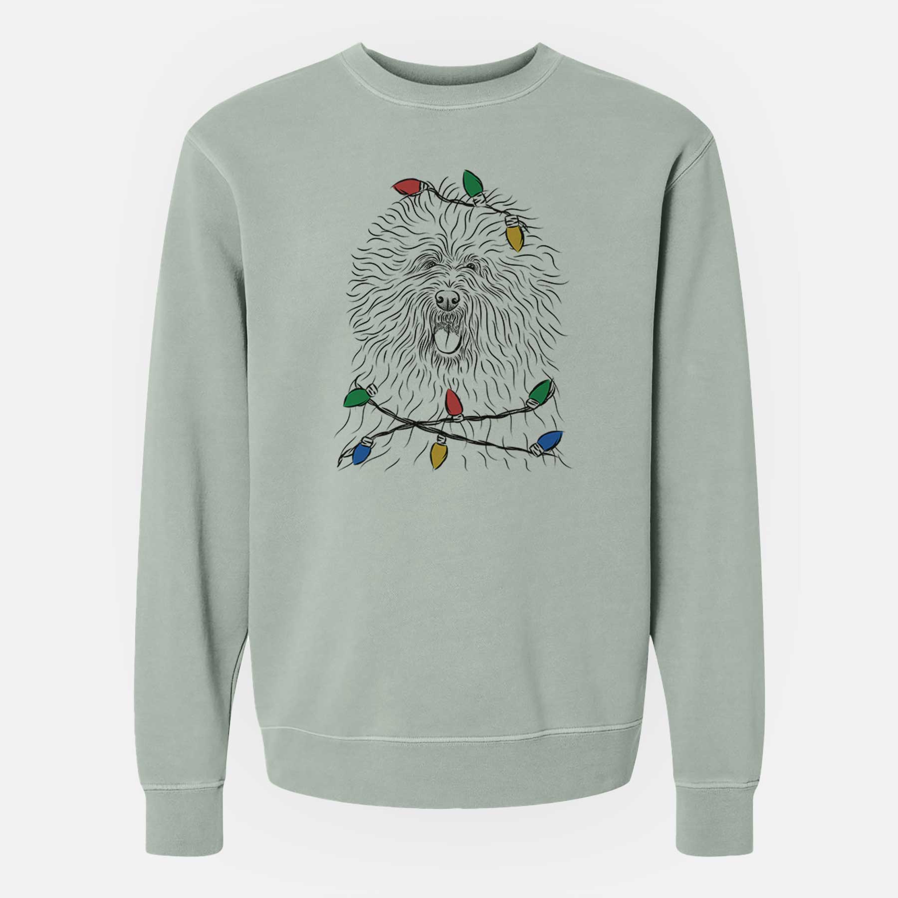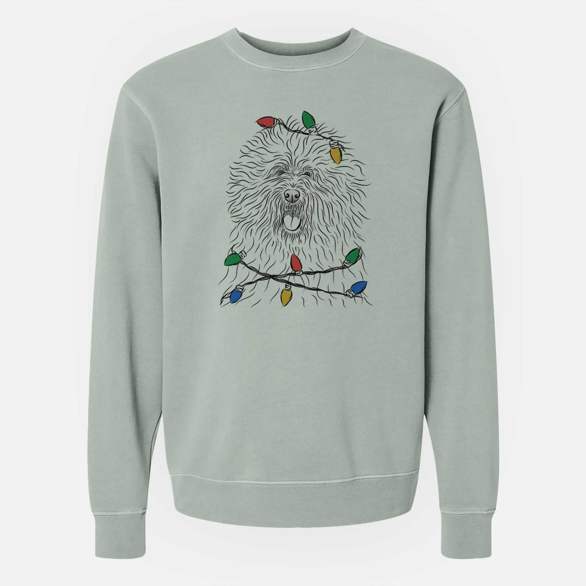 Christmas Lights Cozie the Old English Sheepdog - Unisex Pigment Dyed Crew Sweatshirt
