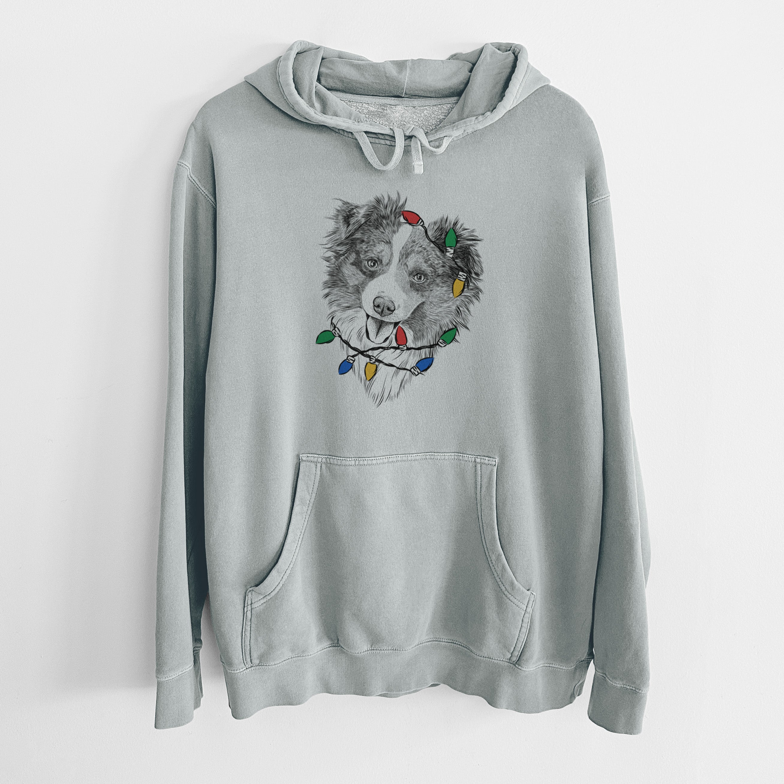 Christmas Lights Doc the Mini Aussie - Unisex Pigment Dyed Hoodie