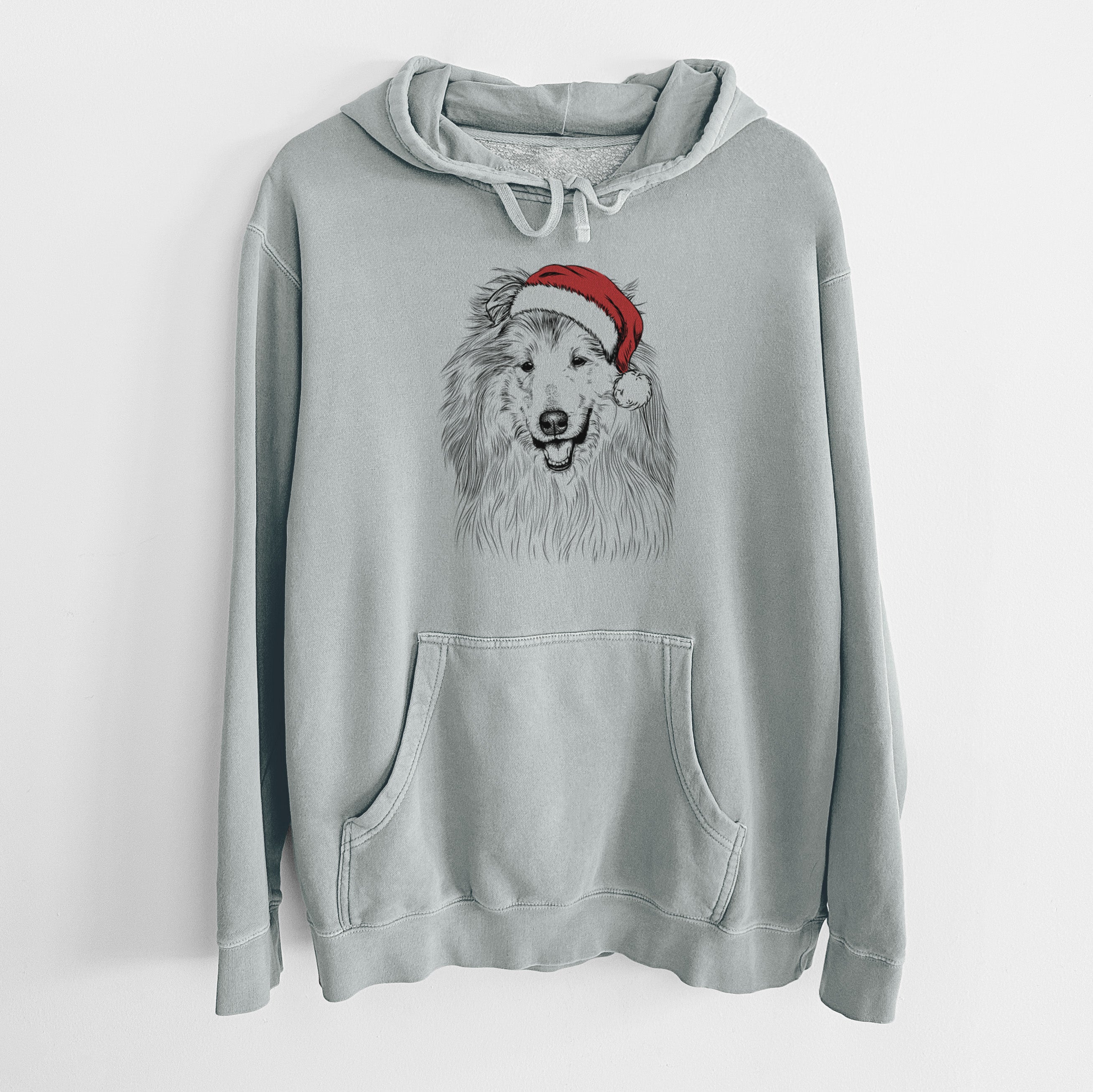 Santa Hat Donnan the Rough Collie - Unisex Pigment Dyed Hoodie