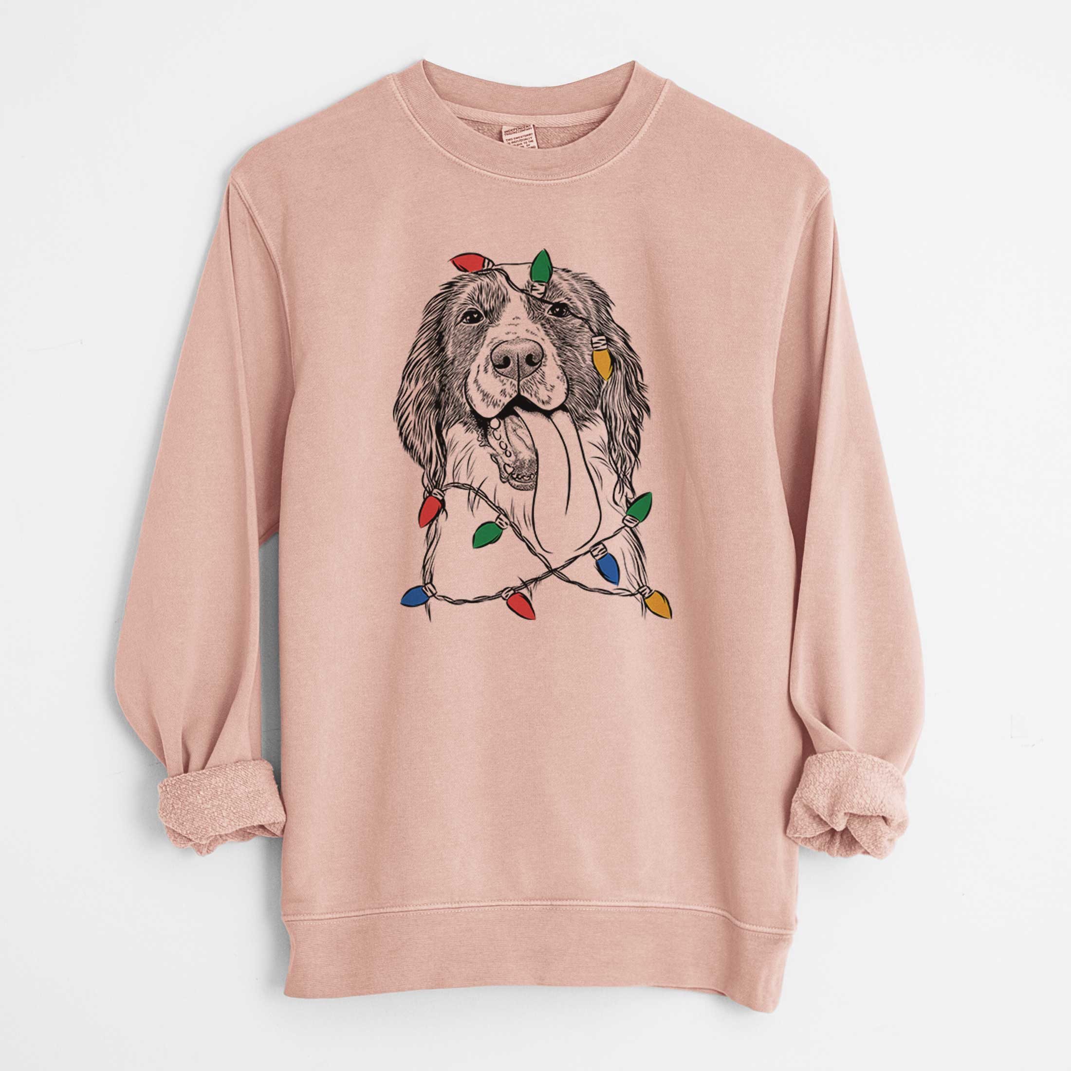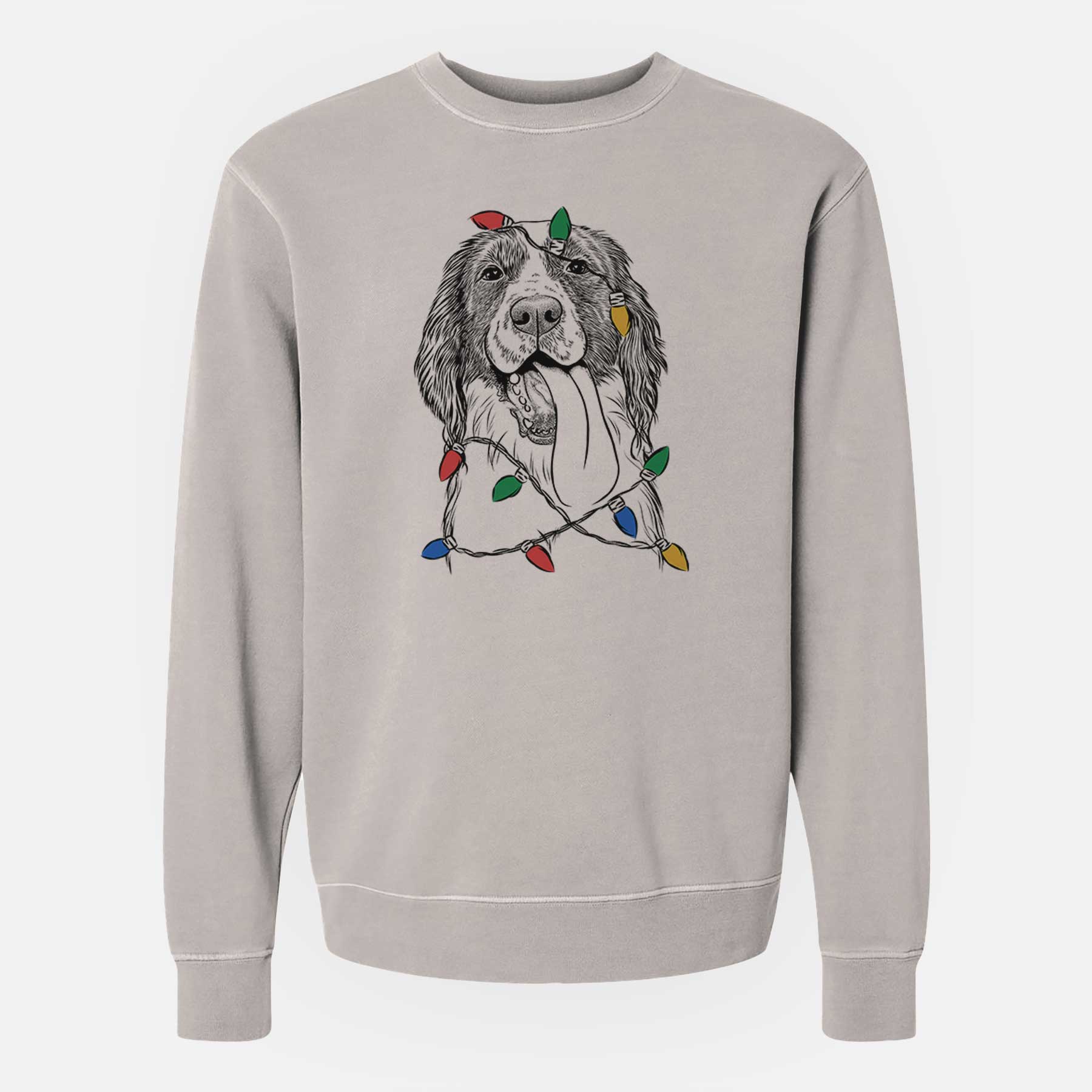 Christmas Lights Duke the English Springer Spaniel - Unisex Pigment Dyed Crew Sweatshirt