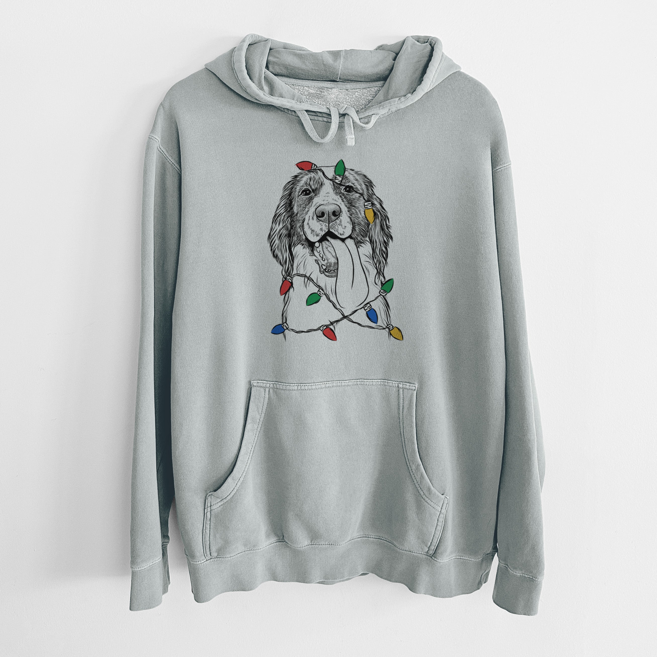Christmas Lights Duke the English Springer Spaniel - Unisex Pigment Dyed Hoodie