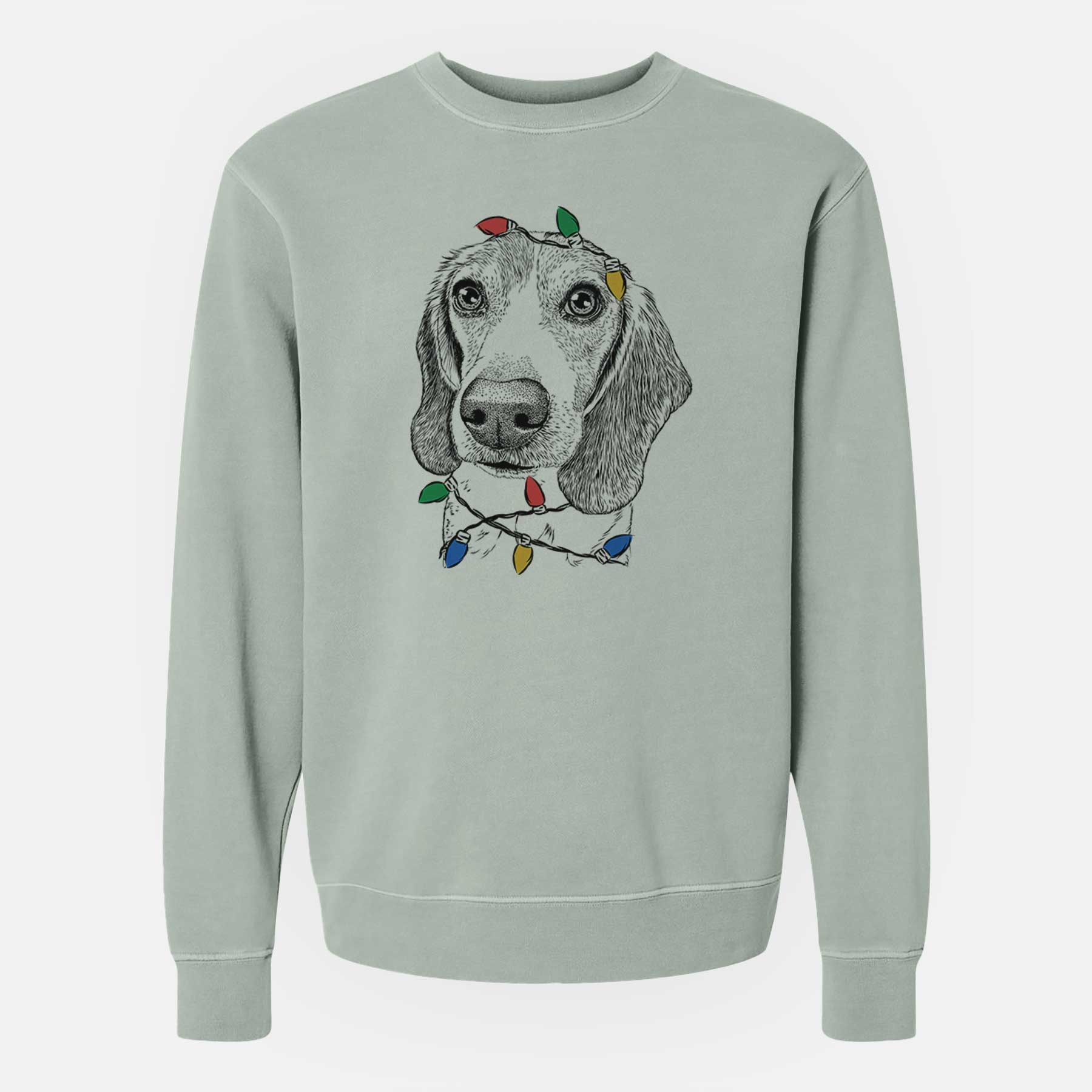 Christmas Lights Elvis the Bluetick Beagle - Unisex Pigment Dyed Crew Sweatshirt