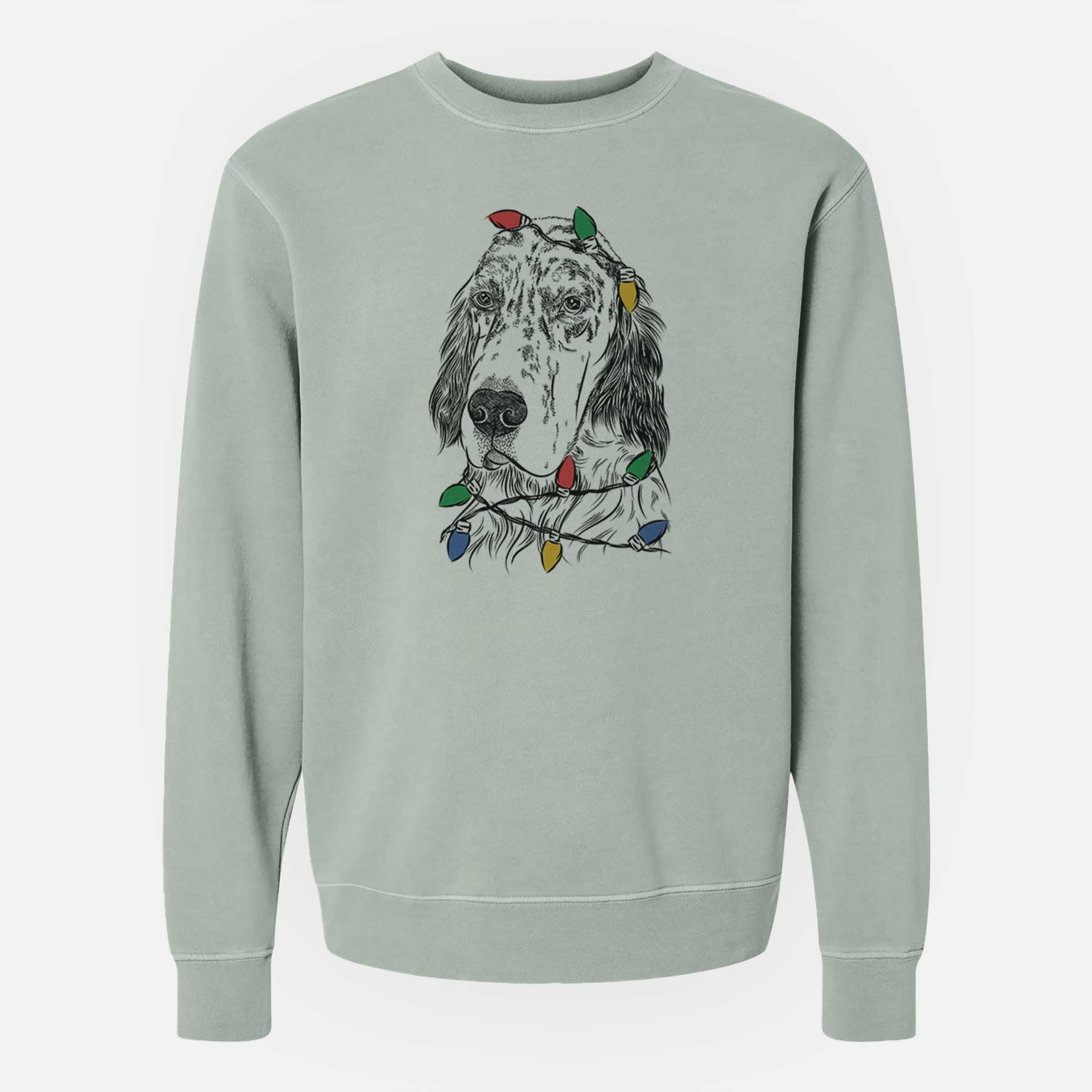 Christmas Lights Hutch the English Setter - Unisex Pigment Dyed Crew Sweatshirt
