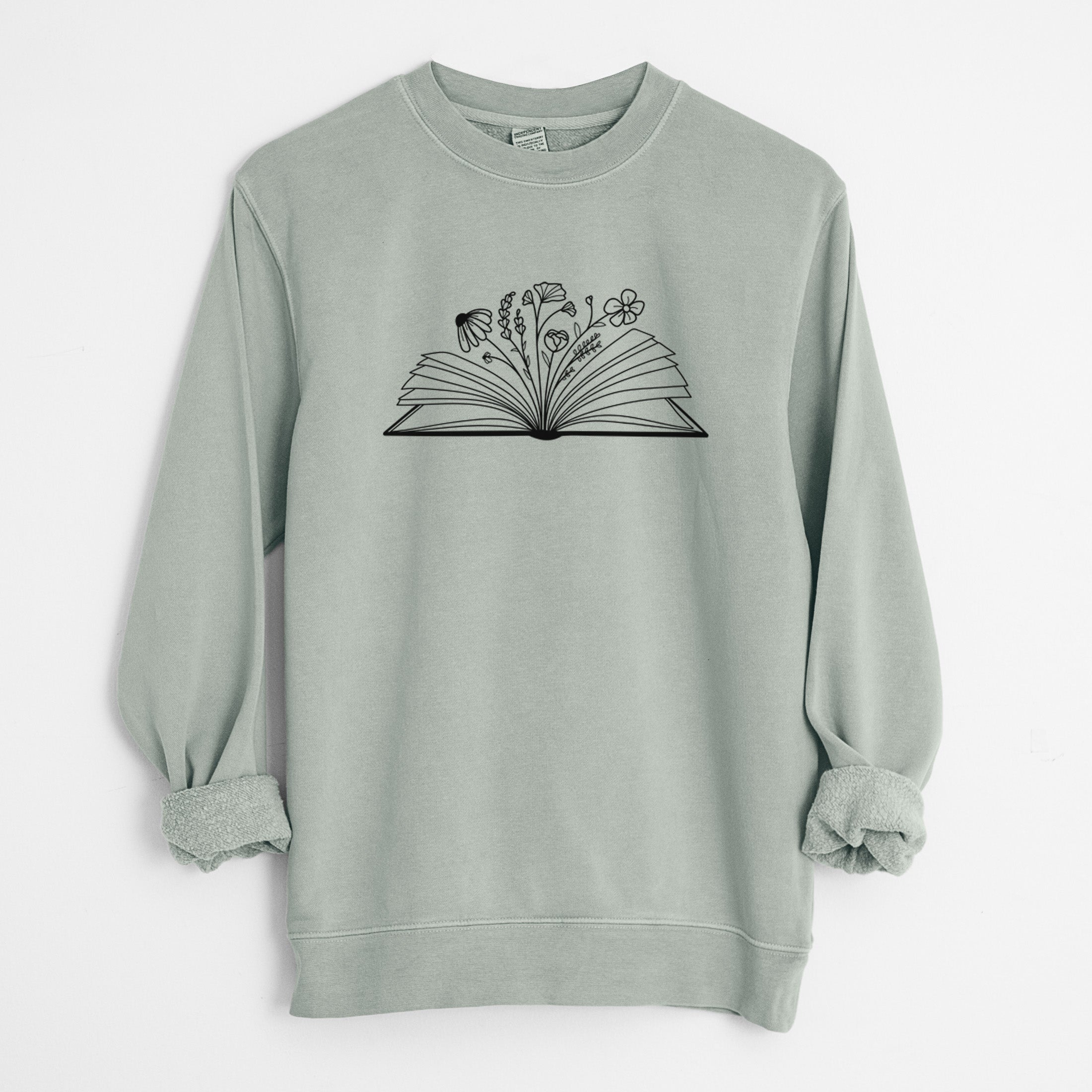Floral Open Book - Unisex Pigment Dyed Crew Sweatshirt