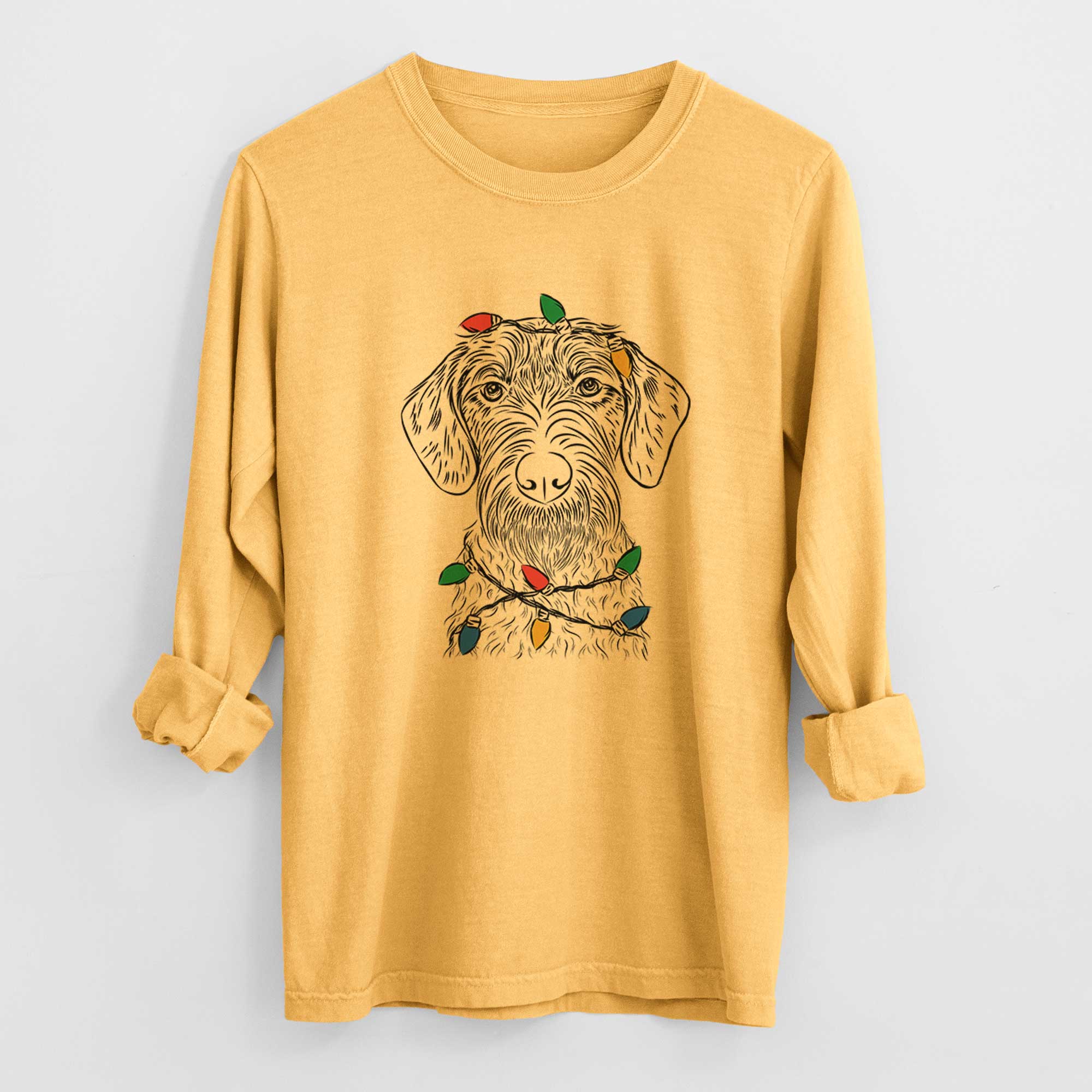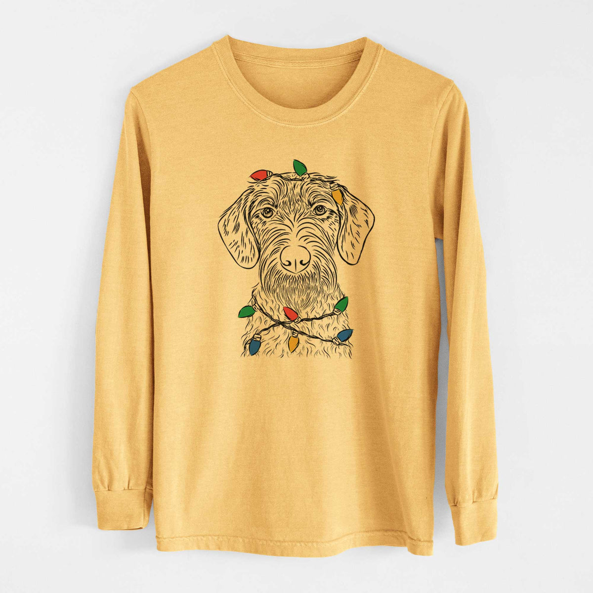 Christmas Lights Gus the German Wirehaired Pointer - Heavyweight 100% Cotton Long Sleeve