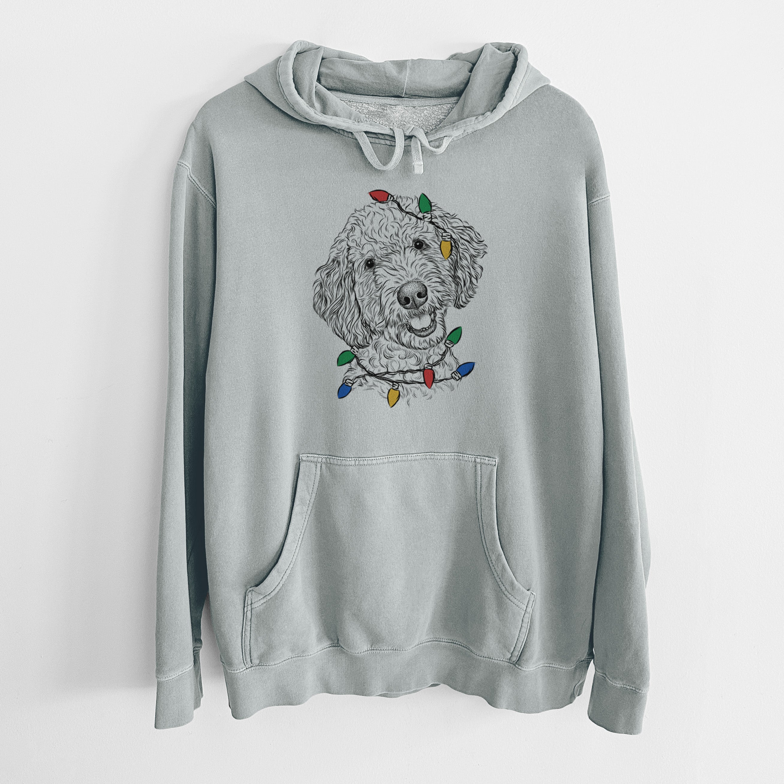 Christmas Lights Gizmo the Goldendoodle - Unisex Pigment Dyed Hoodie