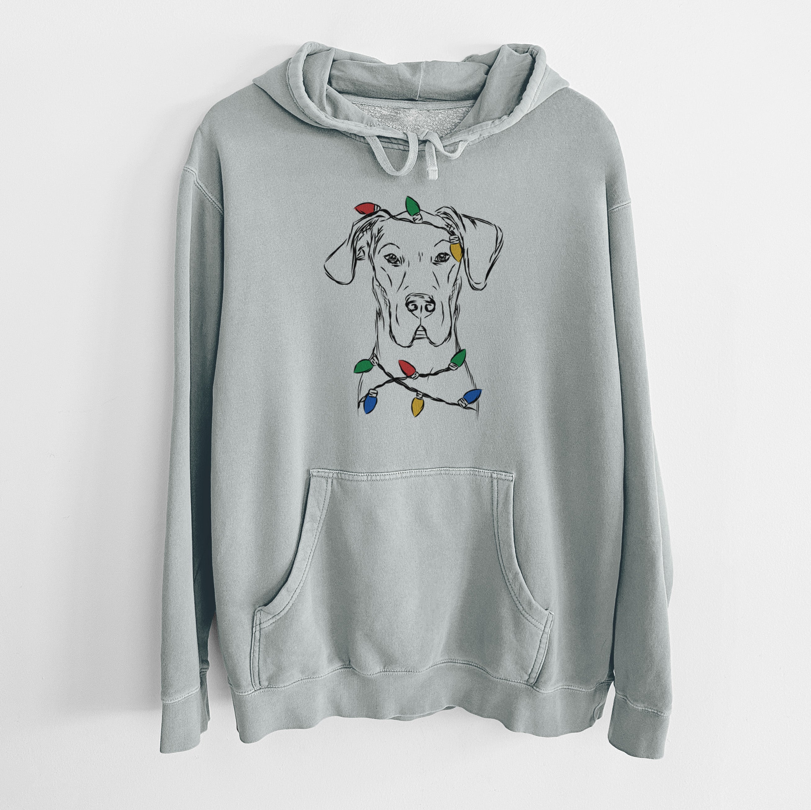 Christmas Lights Harvey the Great Dane - Unisex Pigment Dyed Hoodie