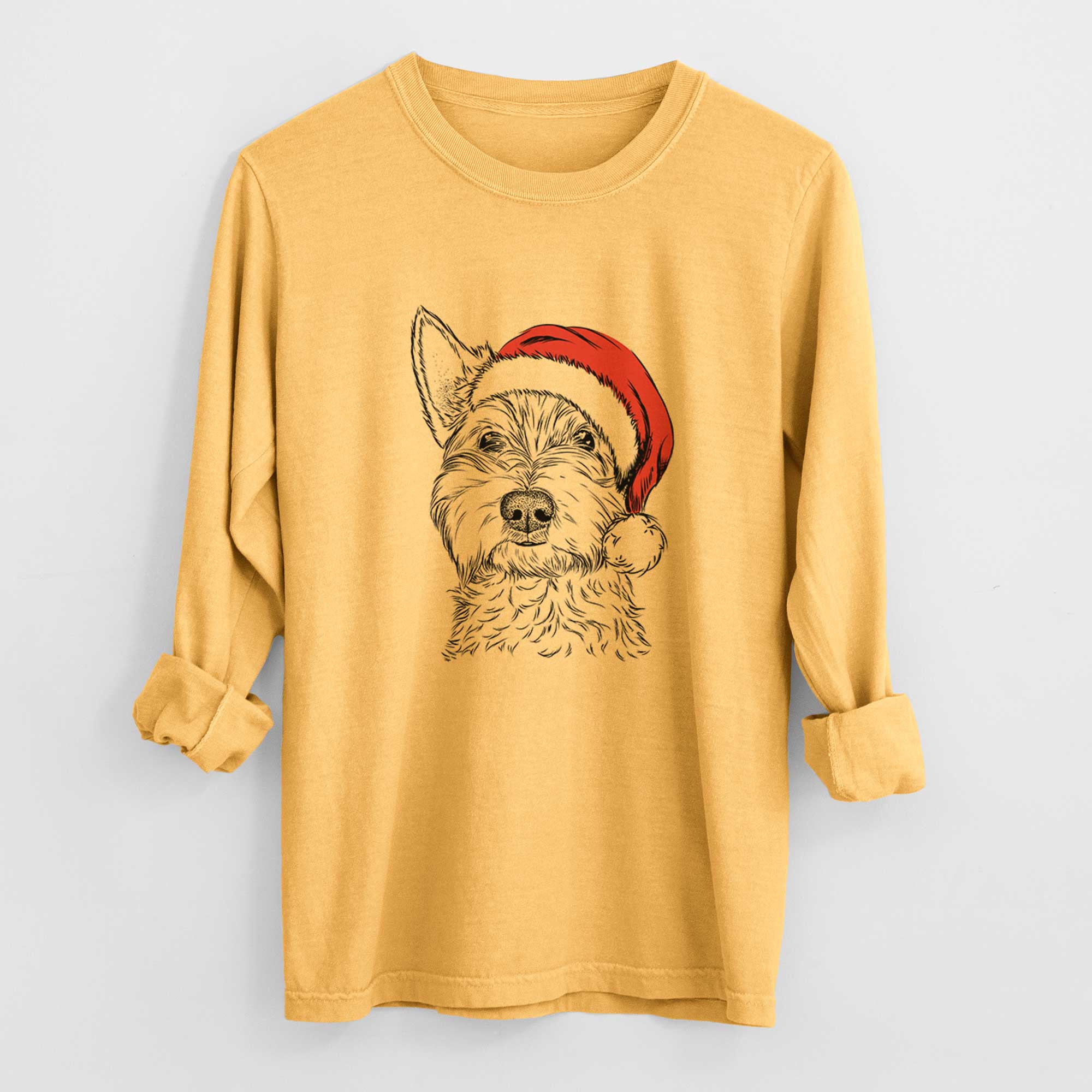 Santa Grizel the West Highland Terrier - Men's Heavyweight 100% Cotton Long Sleeve