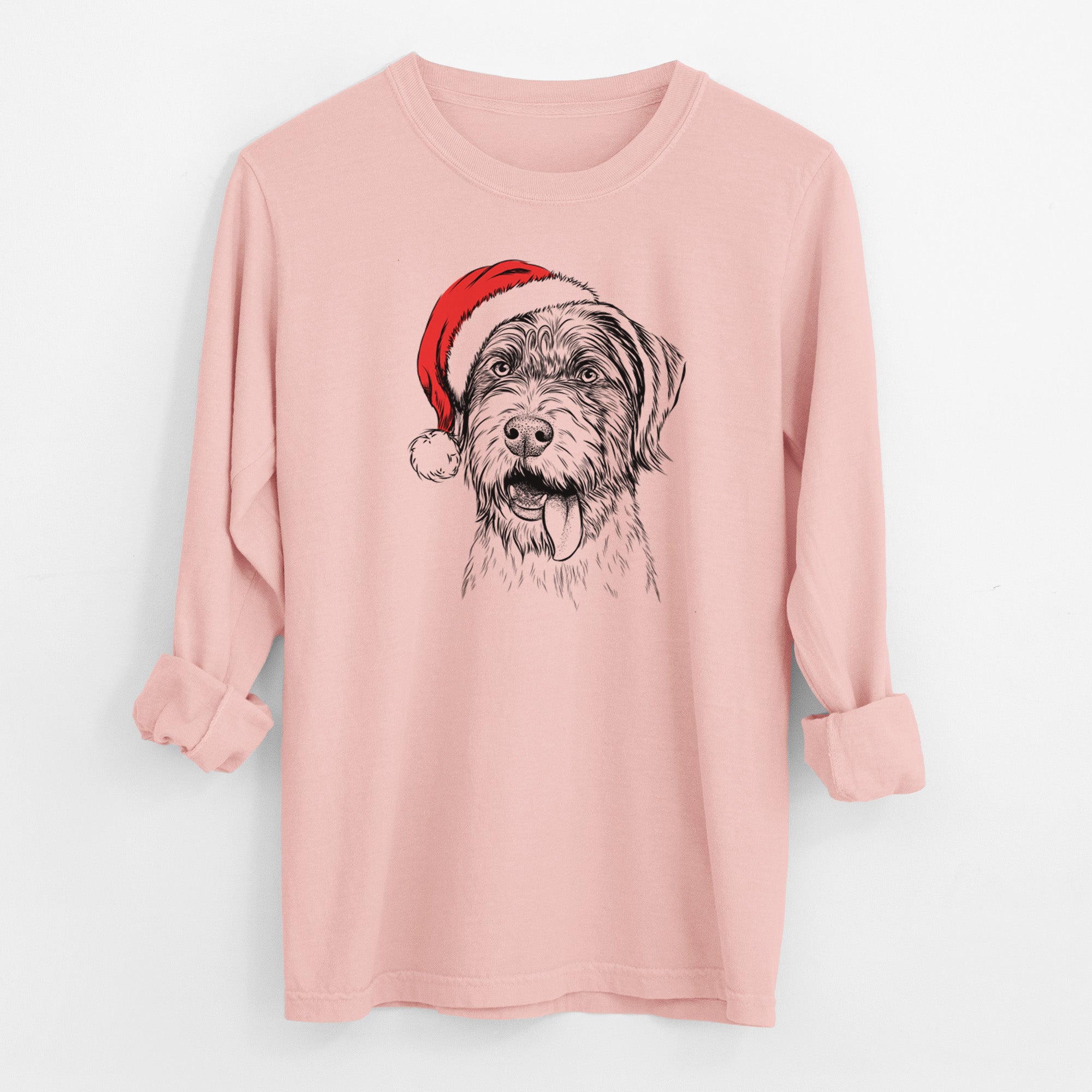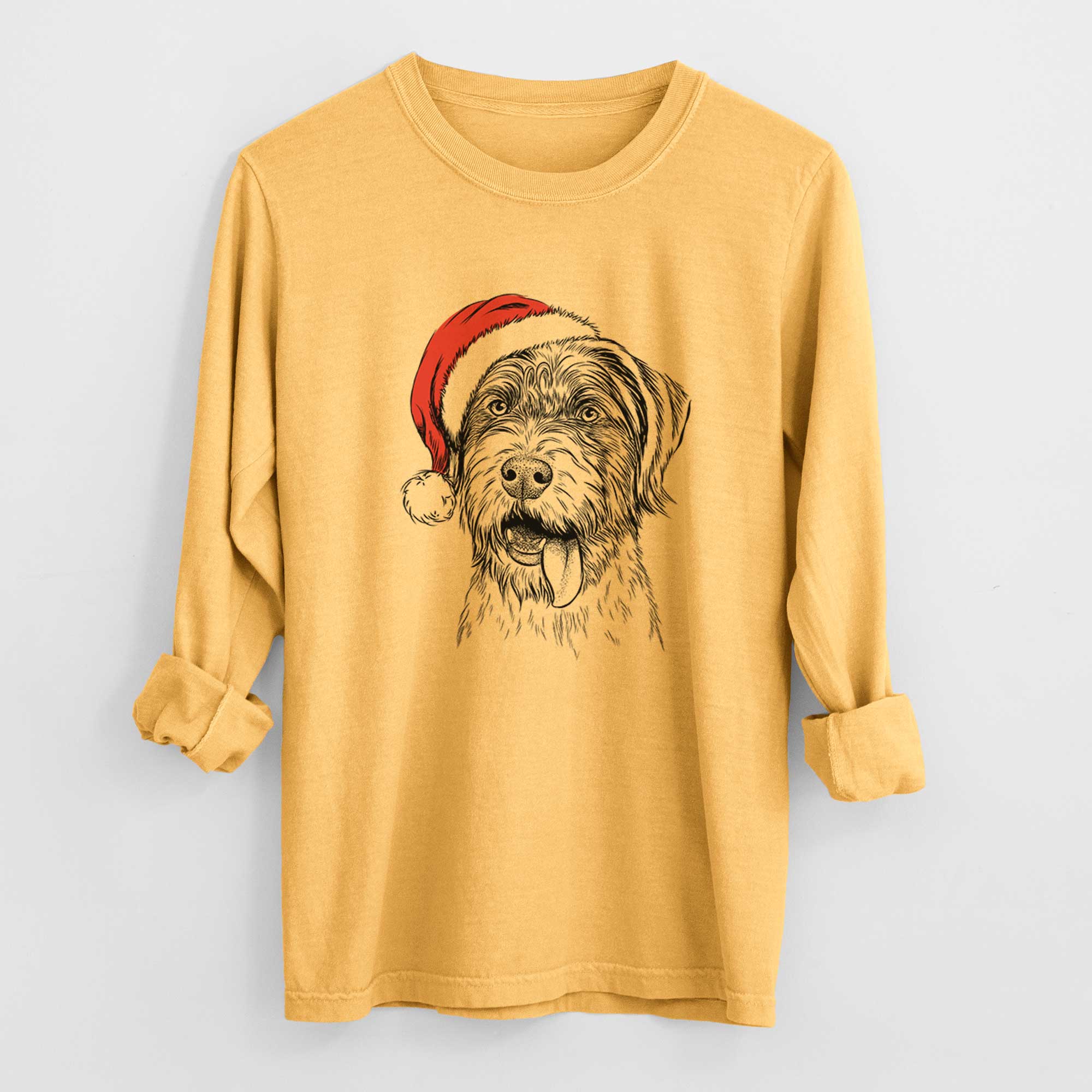 Santa Hazel the German Wirehaired Pointer Mix - Men's Heavyweight 100% Cotton Long Sleeve