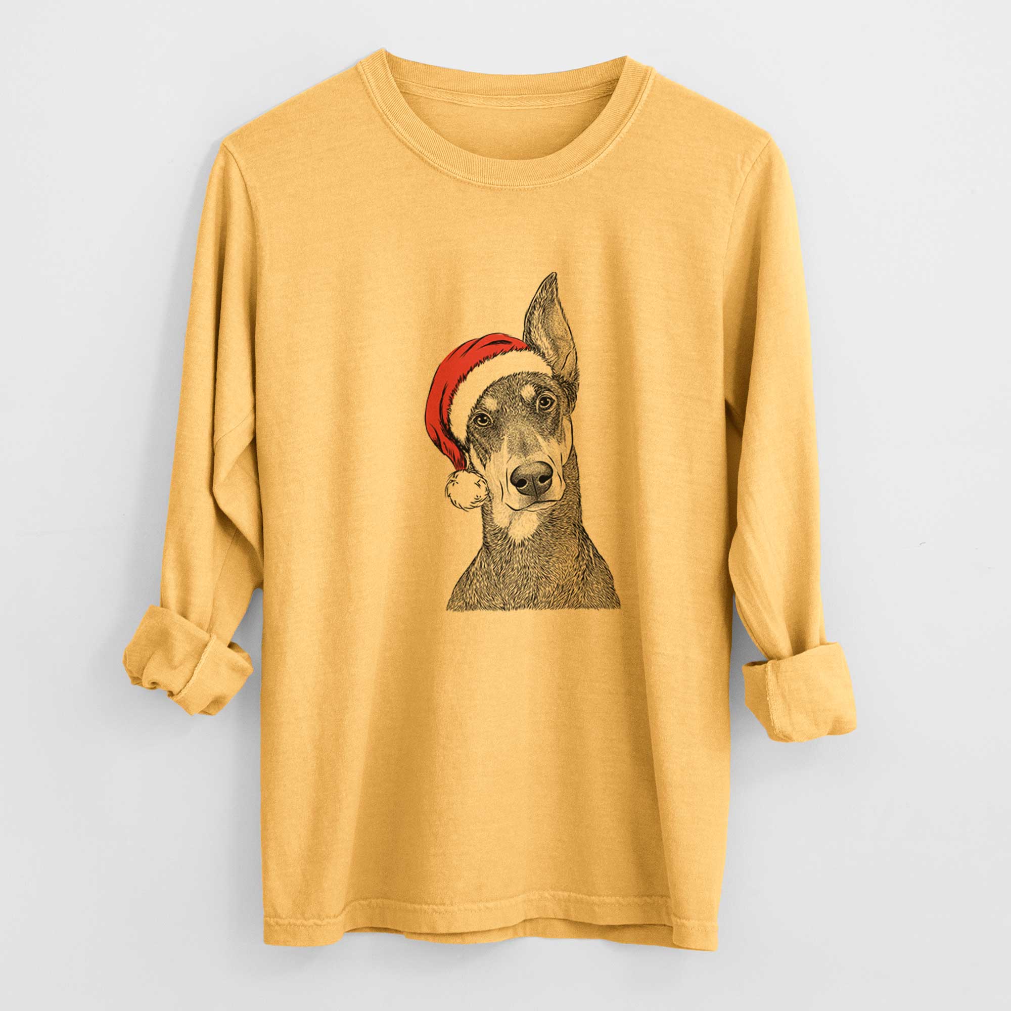Santa Jenna the Doberman Pinscher - Men's Heavyweight 100% Cotton Long Sleeve