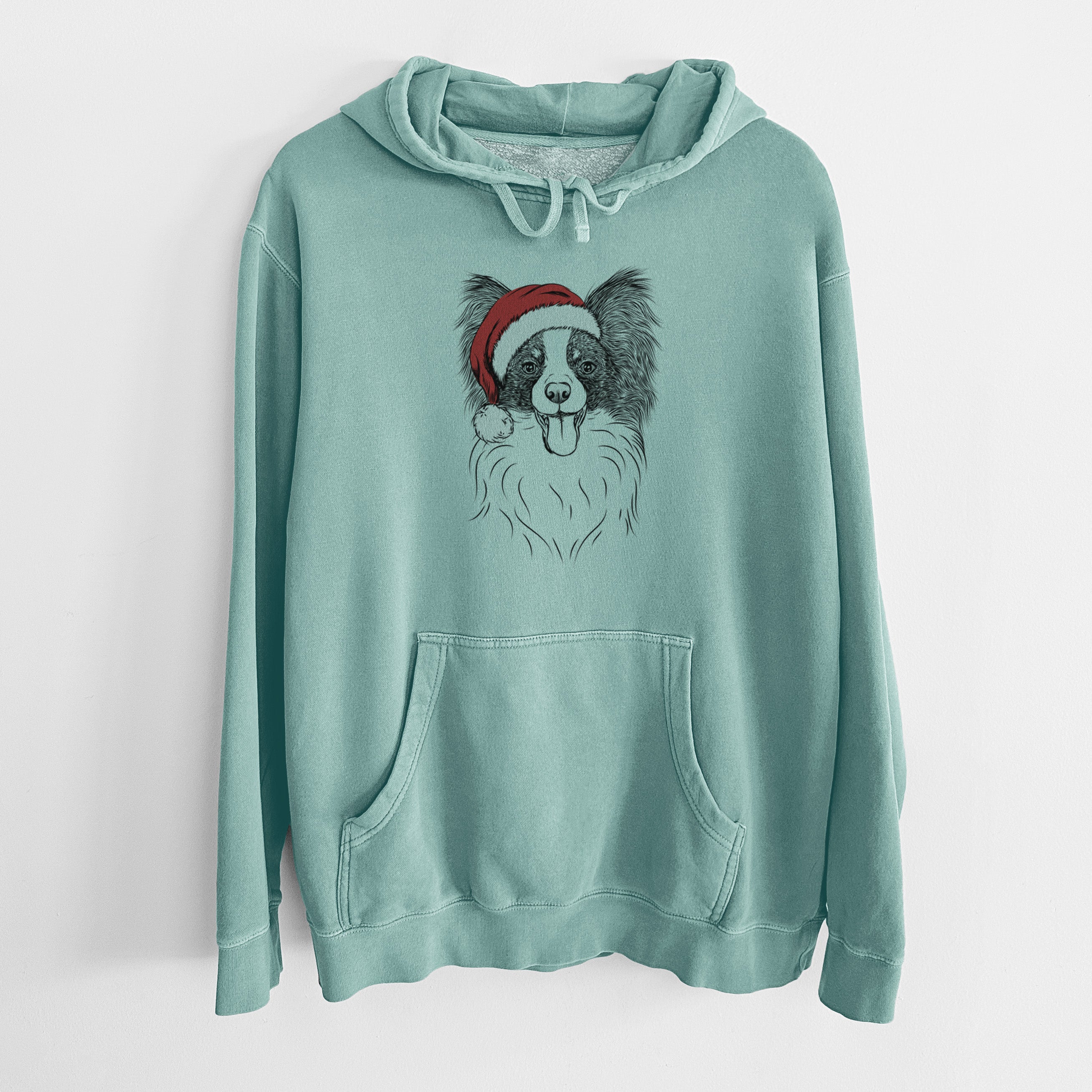Santa Hat Patrick the Papillon - Unisex Pigment Dyed Hoodie