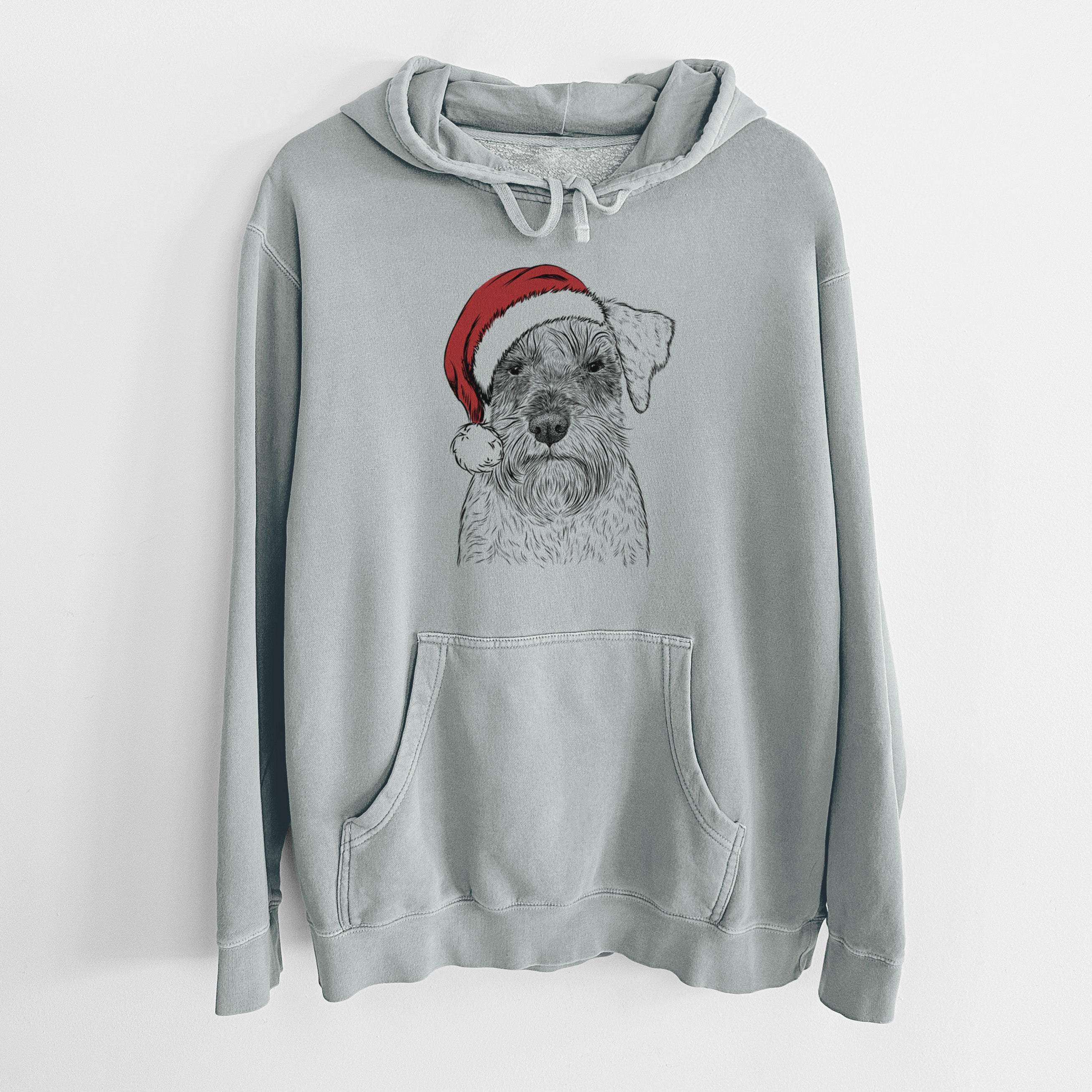 Santa Hat Smokey the Miniature Schnauzer - Unisex Pigment Dyed Hoodie