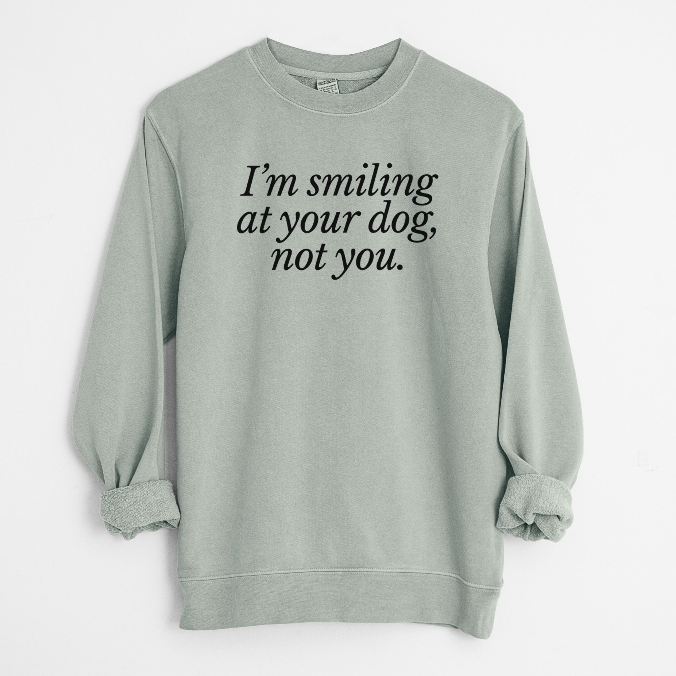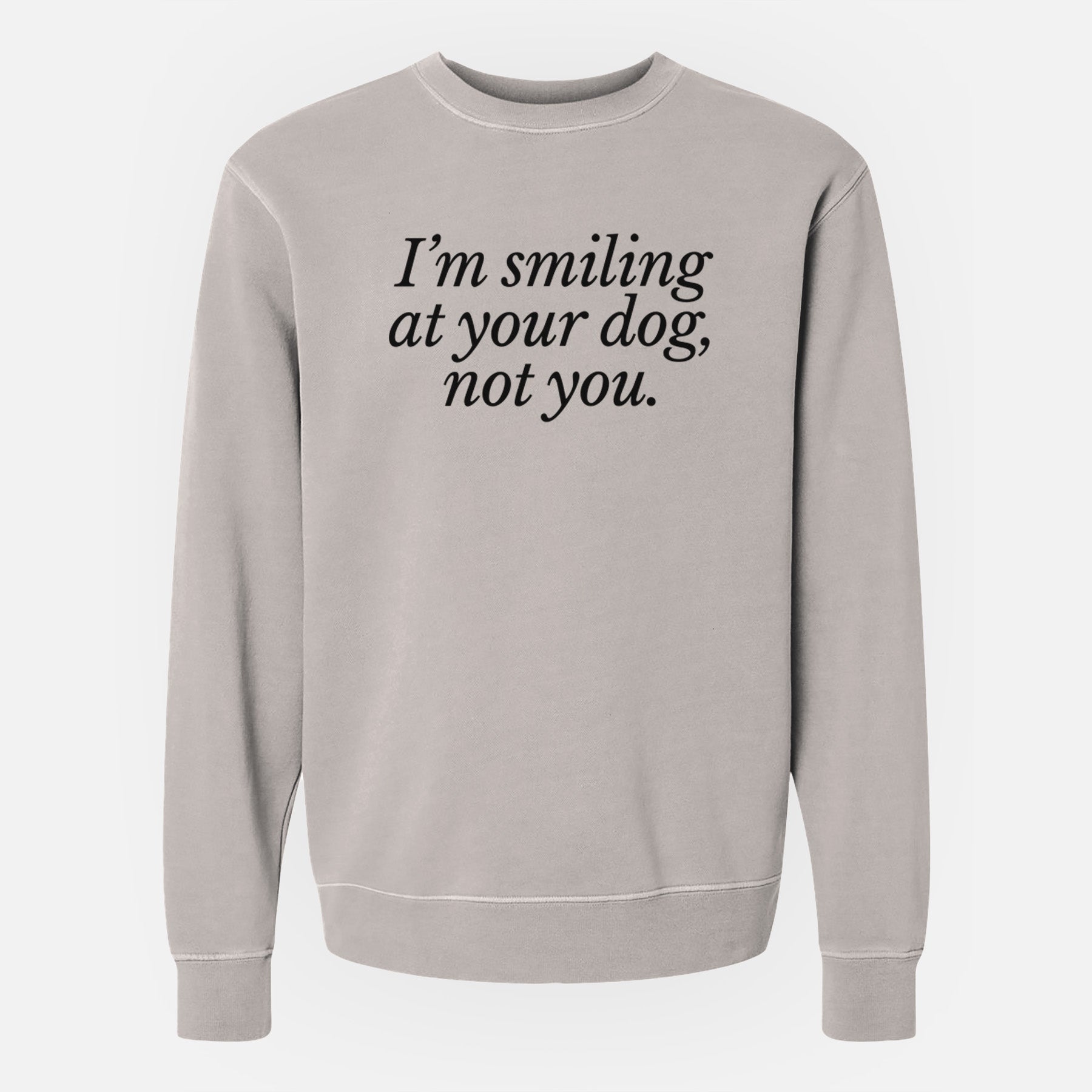 I’m smiling at your dog, not you - Unisex Pigment Dyed Crew Sweatshirt