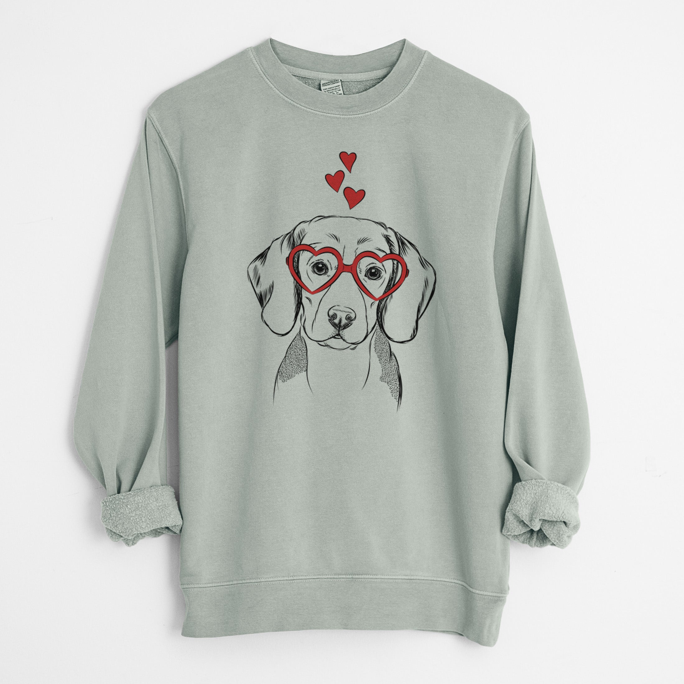 Valentine Jake the Beagle - Unisex Pigment Dyed Crew Sweatshirt