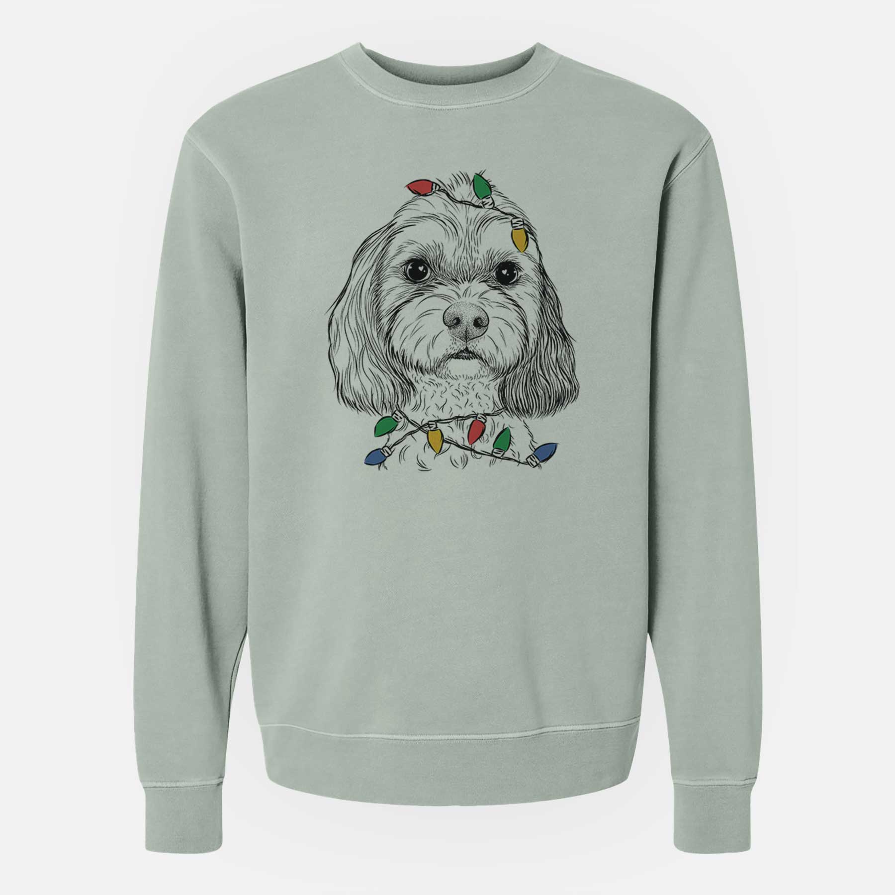 Christmas Lights Jasper Diggins the Cavapoo - Unisex Pigment Dyed Crew Sweatshirt