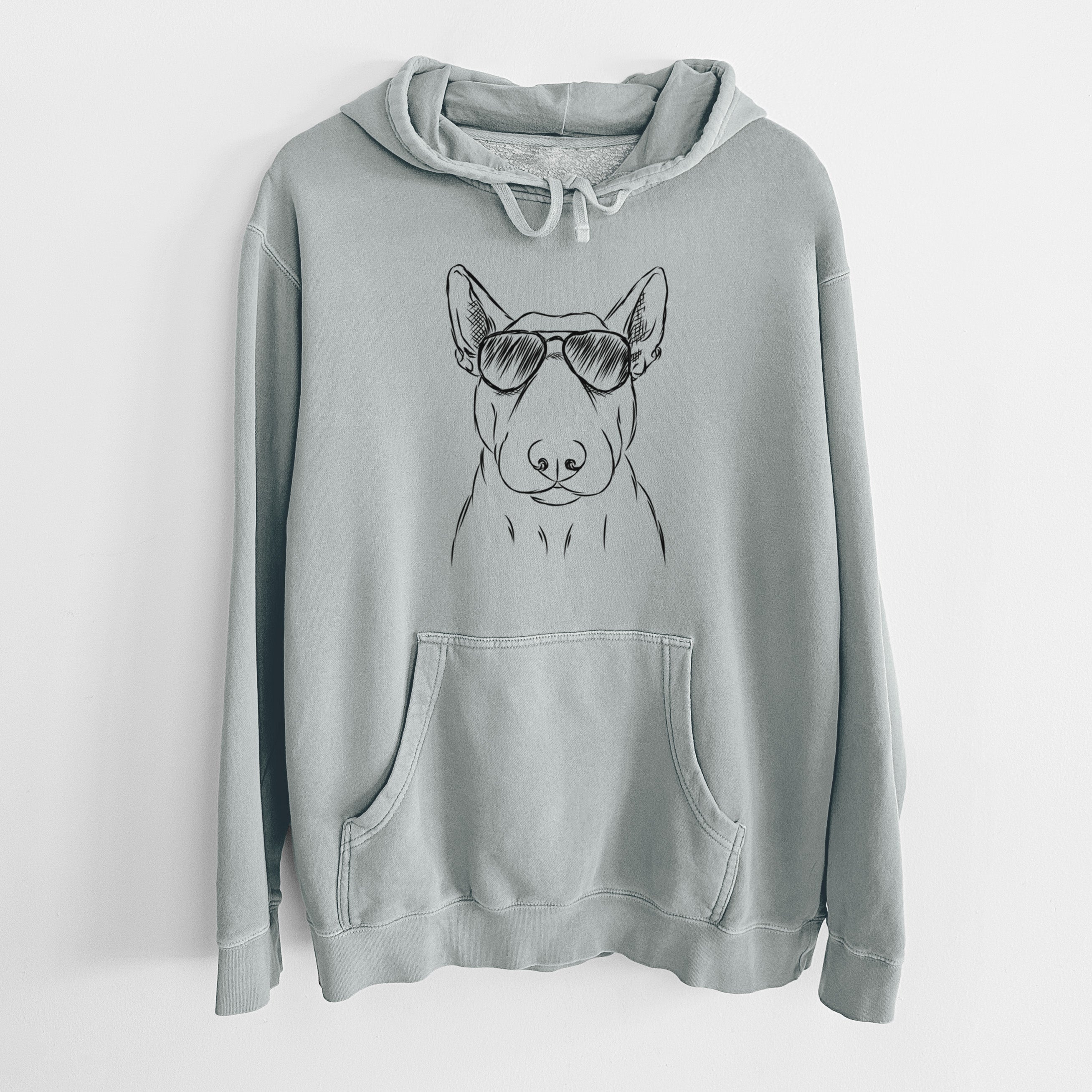 Aviator Jett the Bull Terrier - Unisex Pigment Dyed Hoodie