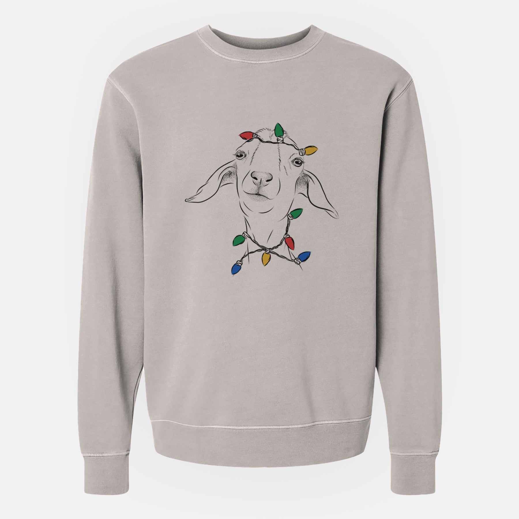 Christmas Lights Kara Dune the Spanish Boer Goat - Unisex Pigment Dyed Crew Sweatshirt