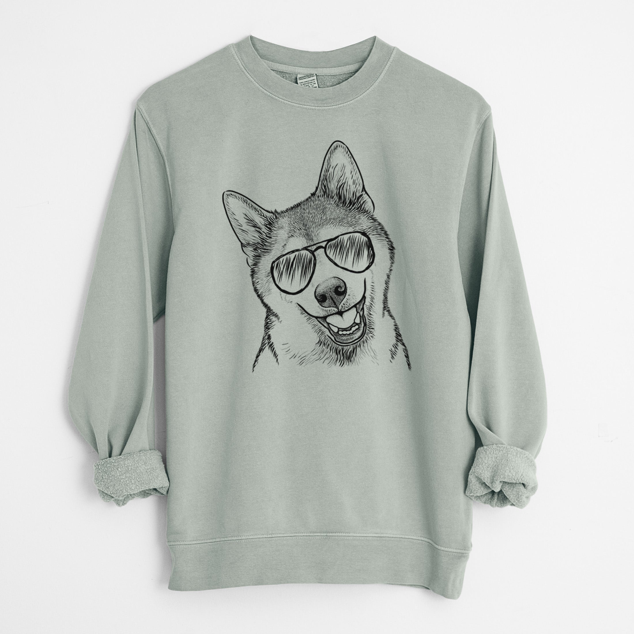 Aviator Koby the Shiba Inu - Unisex Pigment Dyed Crew Sweatshirt