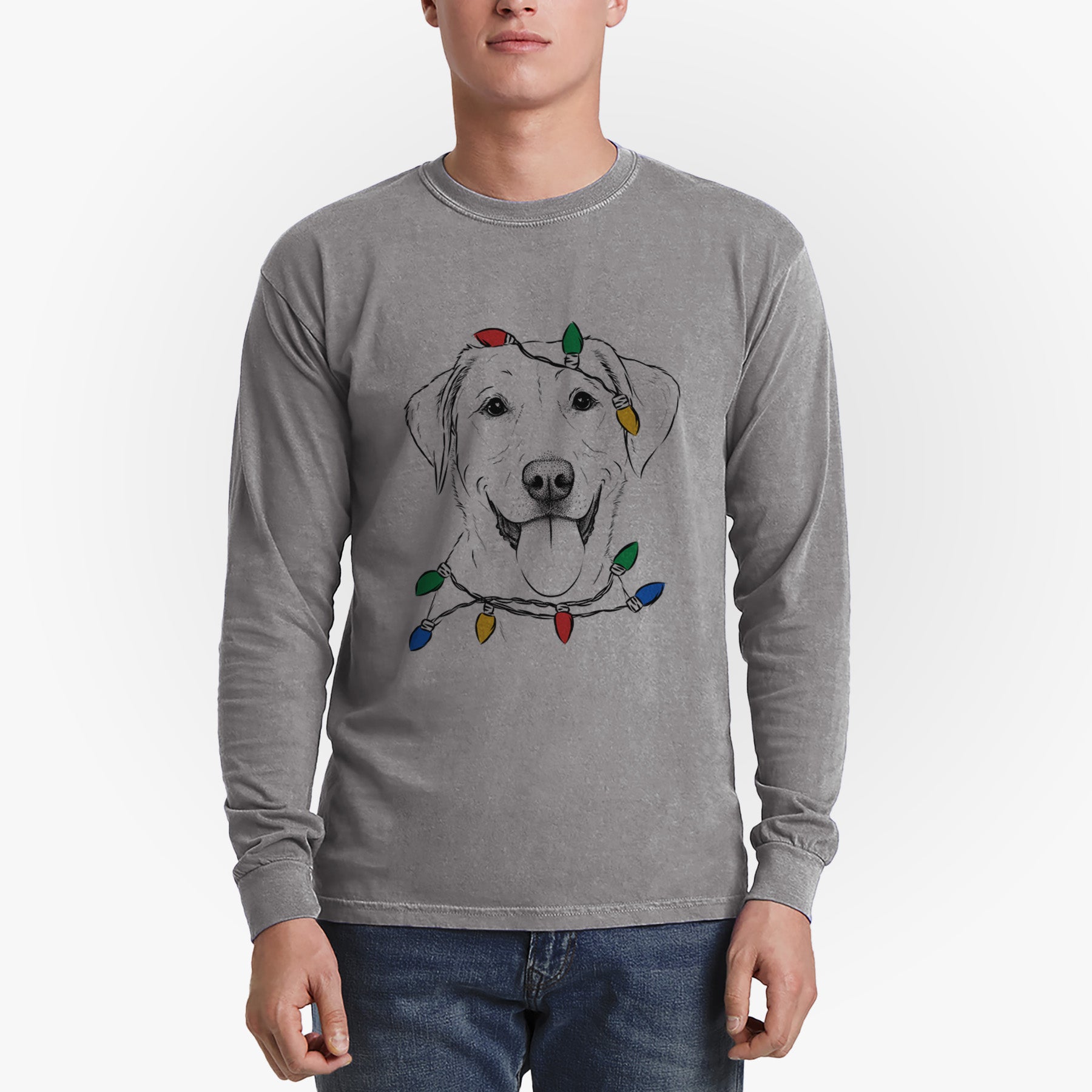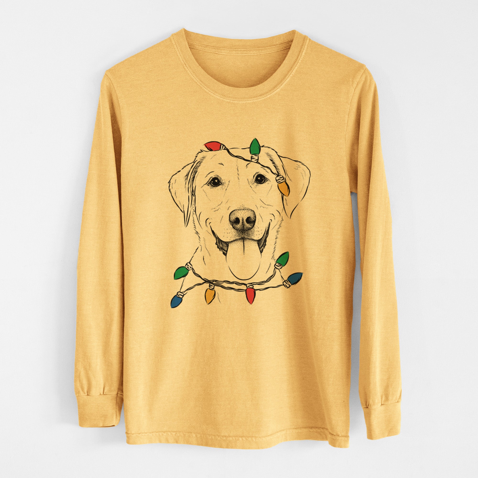 Christmas Lights Daisy the Labrador Retriever - Heavyweight 100% Cotton Long Sleeve