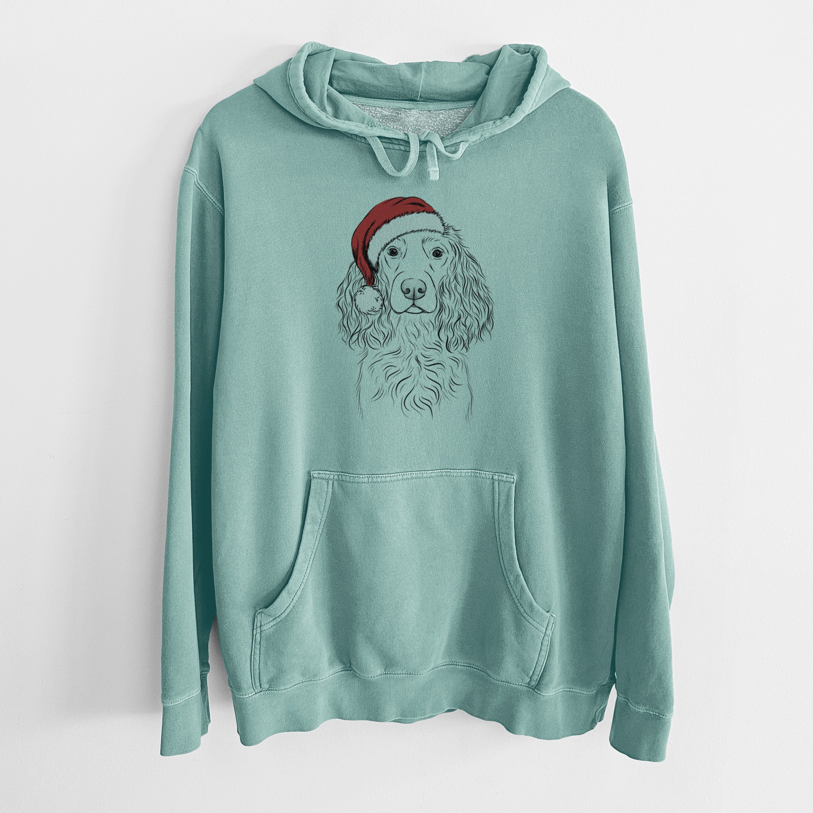 Santa Hat Landry the Boykin Spaniel - Unisex Pigment Dyed Hoodie