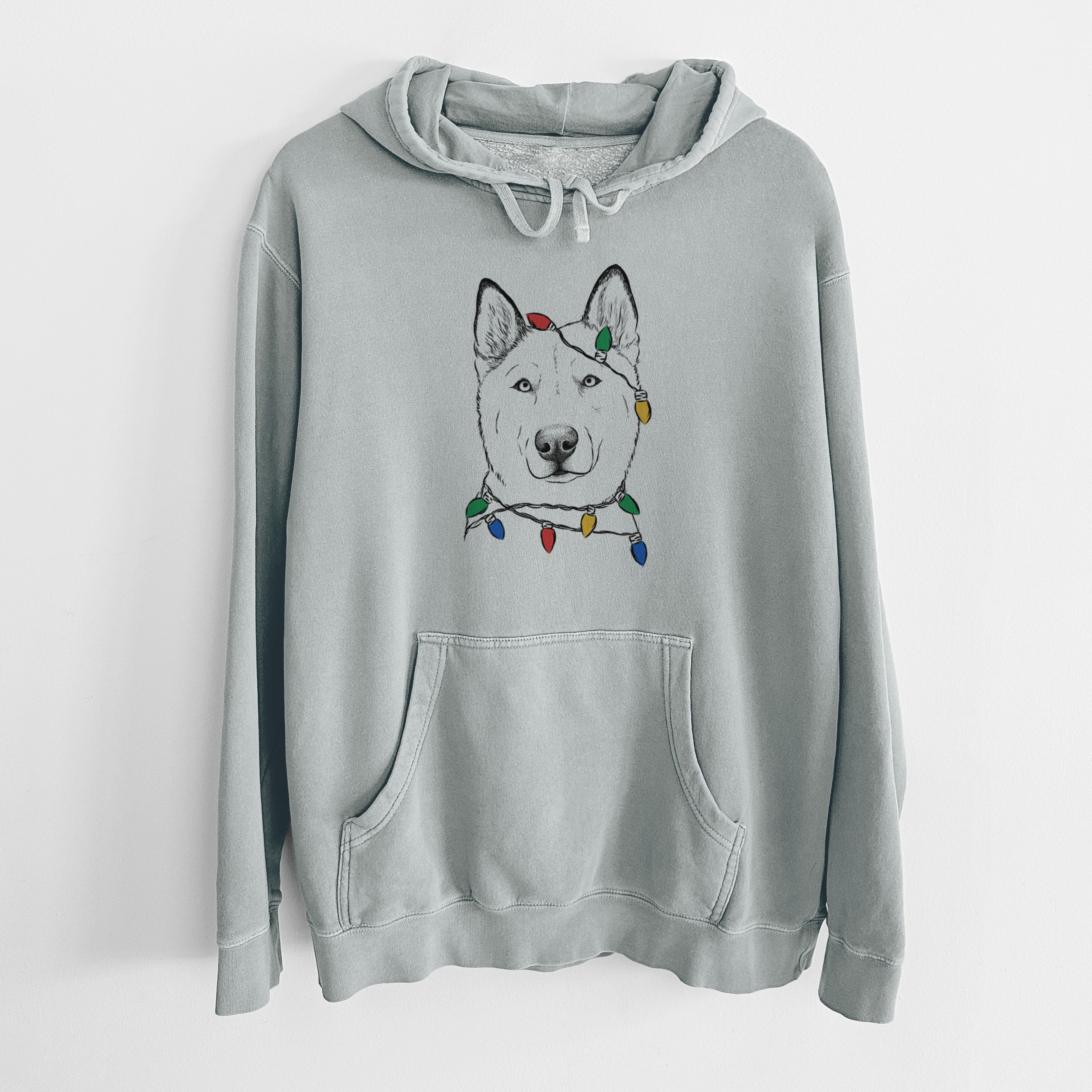 Christmas Lights London the Siberian Husky - Unisex Pigment Dyed Hoodie