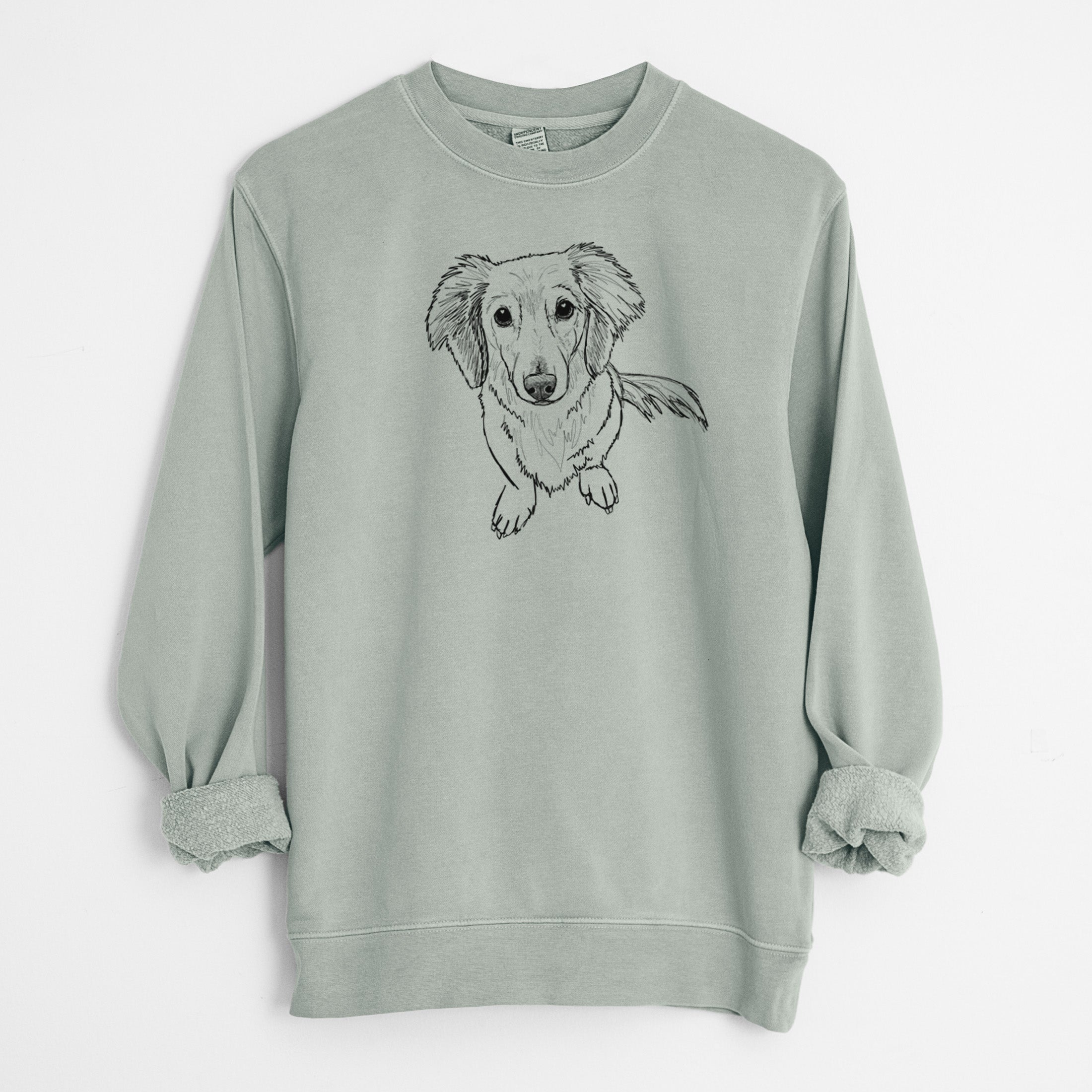 Doodled Enzo the Long Haired Dachshund - Unisex Pigment Dyed Crew Sweatshirt