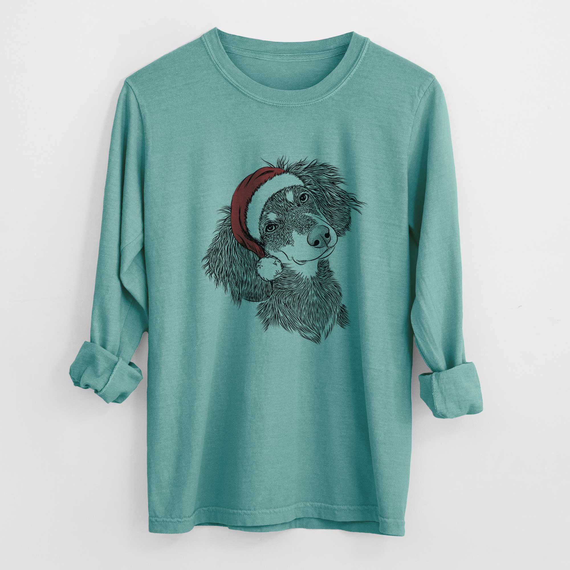 Santa Bailey the Long Haired Dachshund - Heavyweight 100% Cotton Long Sleeve