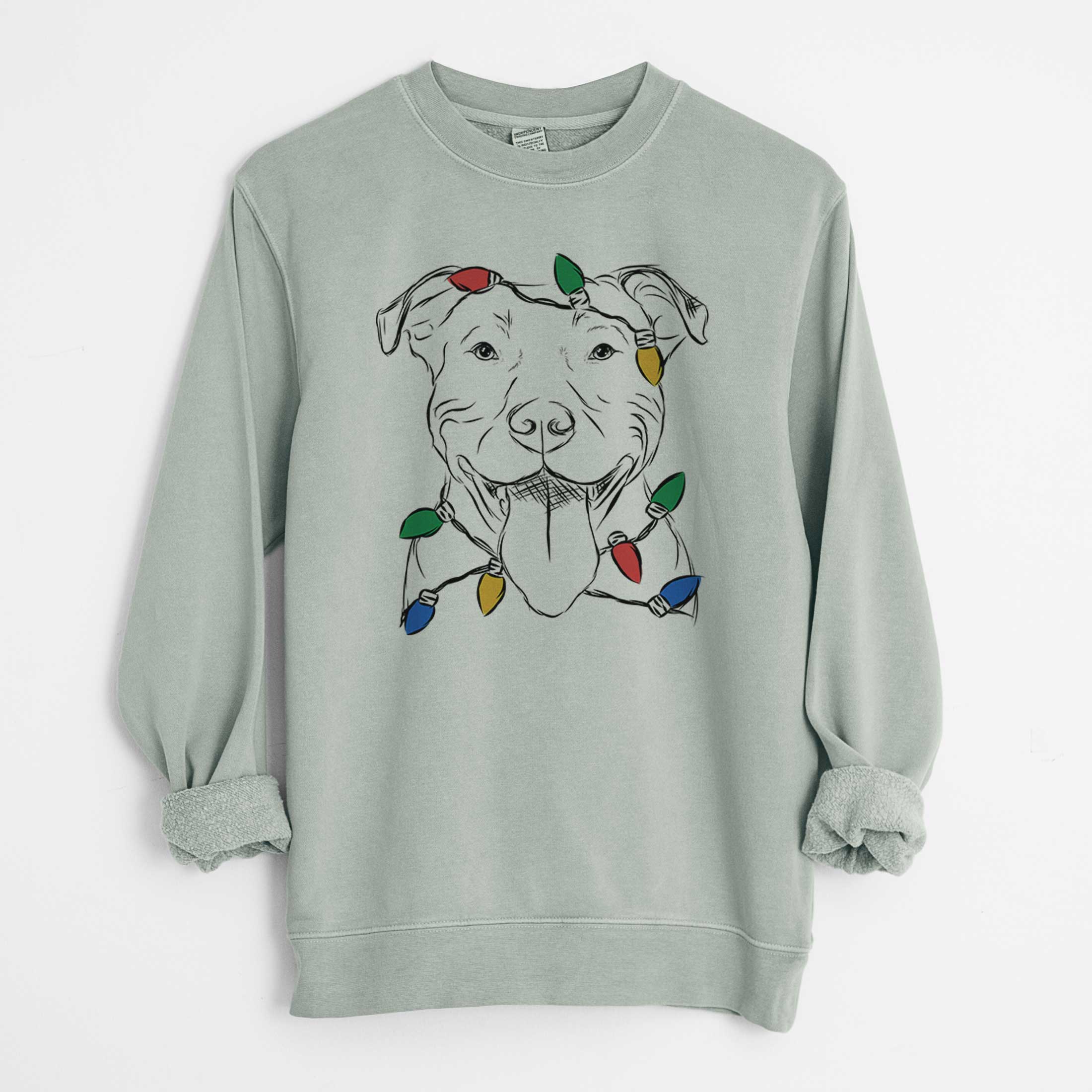 Christmas Lights Major the Pitbull - Unisex Pigment Dyed Crew Sweatshirt