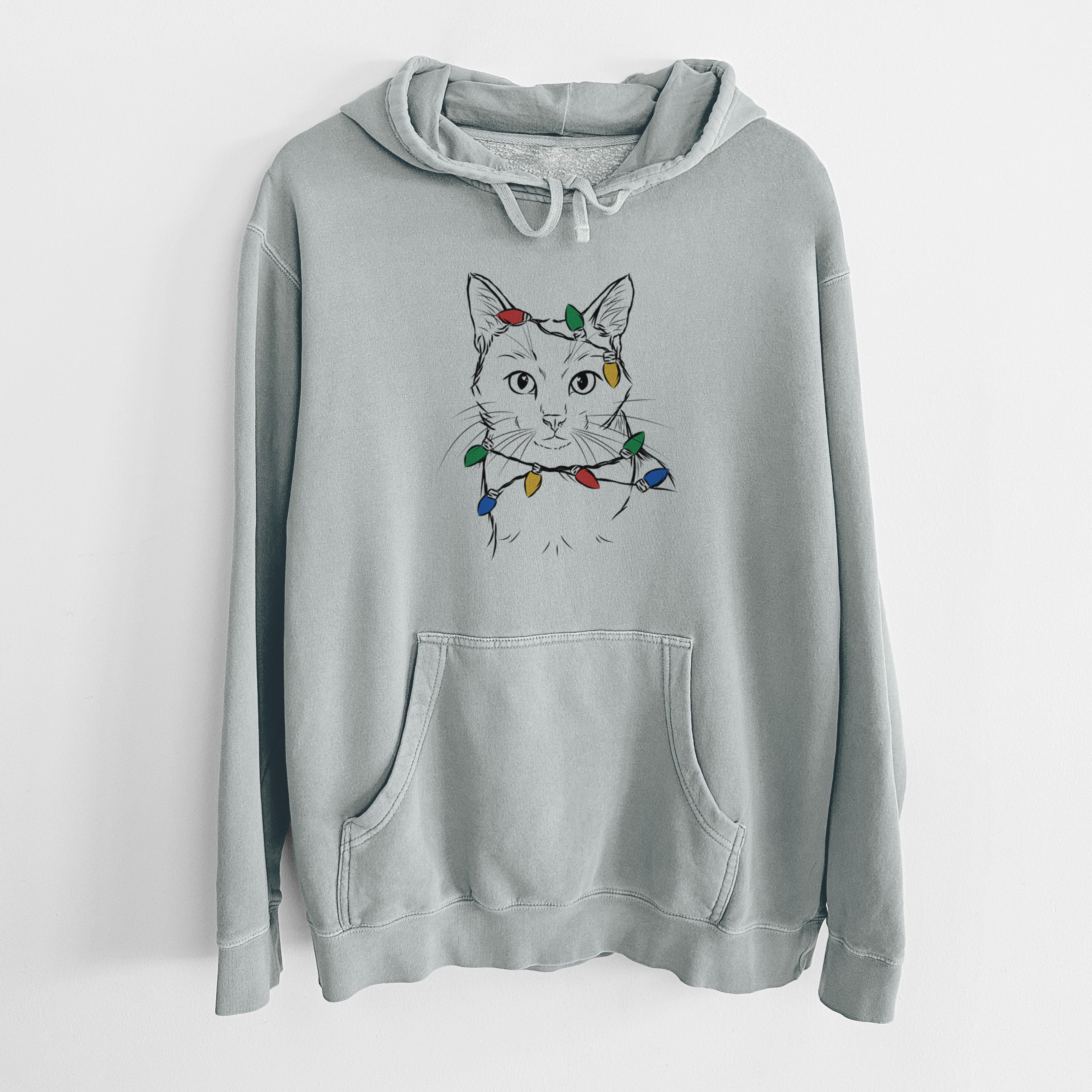 Christmas Lights Maverick the Cat - Unisex Pigment Dyed Hoodie