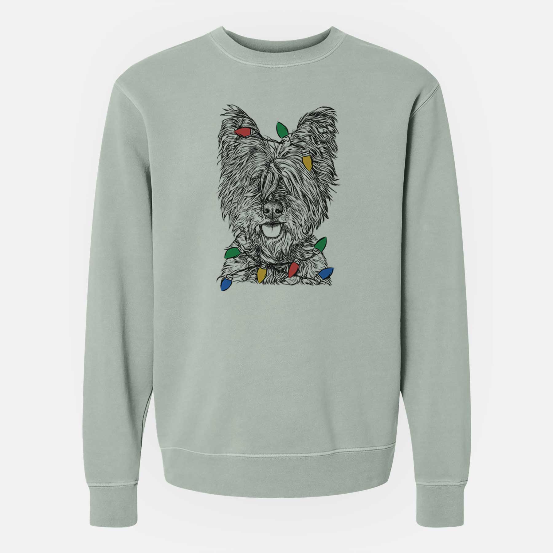 Christmas Lights McDuff the Cairn Terrier - Unisex Pigment Dyed Crew Sweatshirt