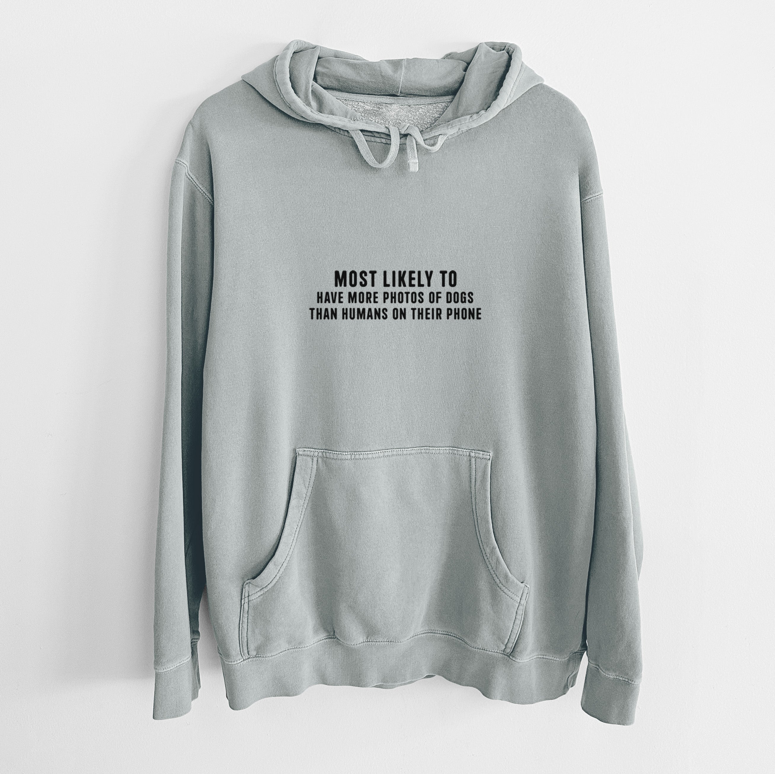 Most Likely to Have More Photos of Dogs than Humans on their Phone - Unisex Pigment Dyed Hoodie